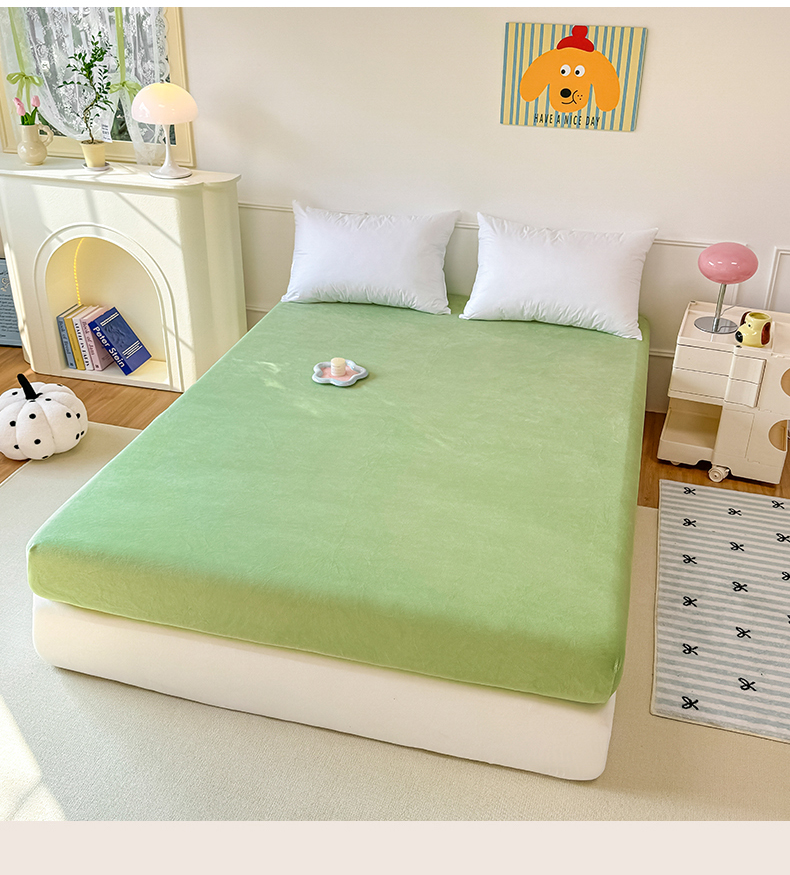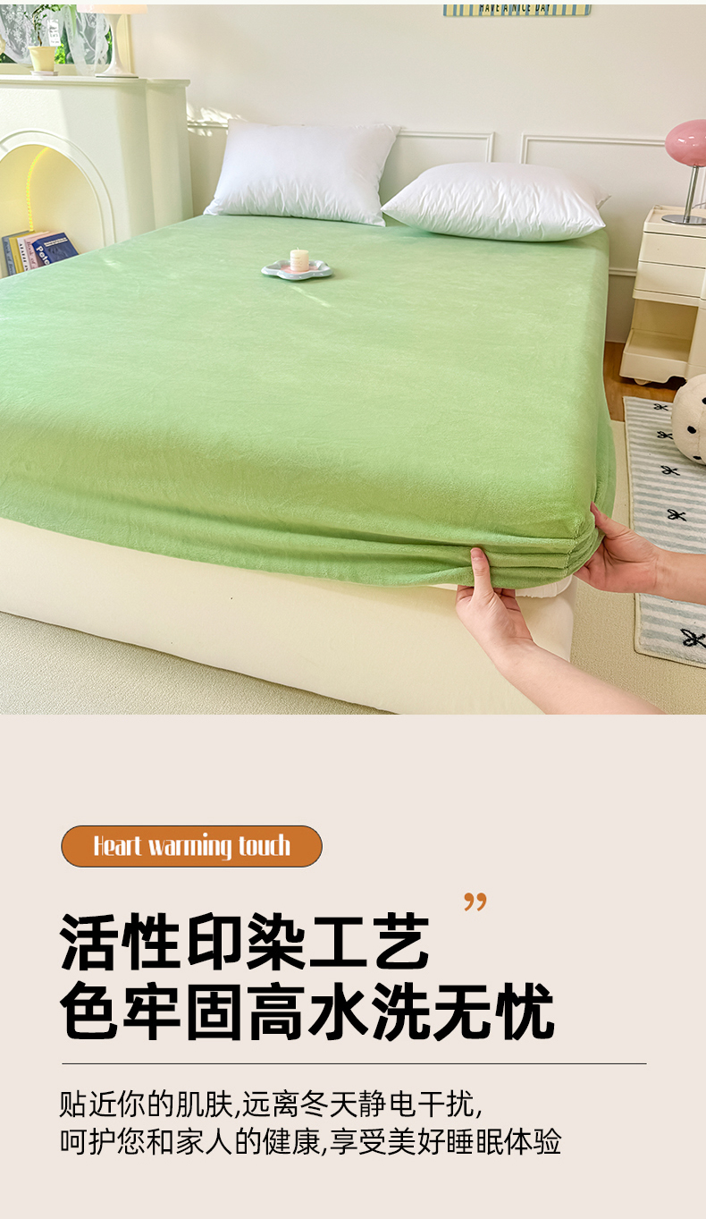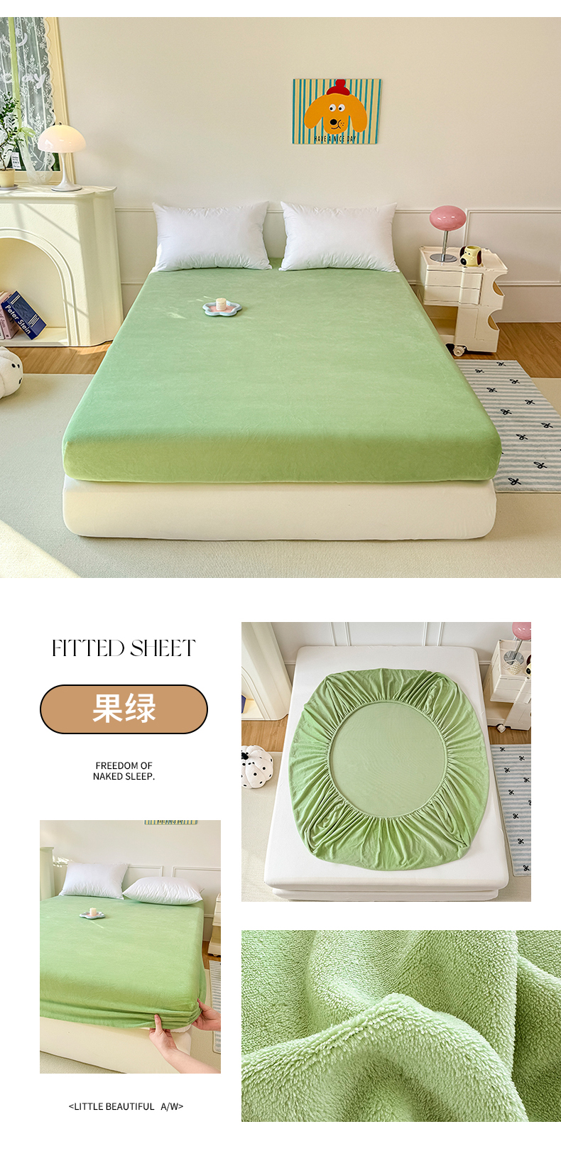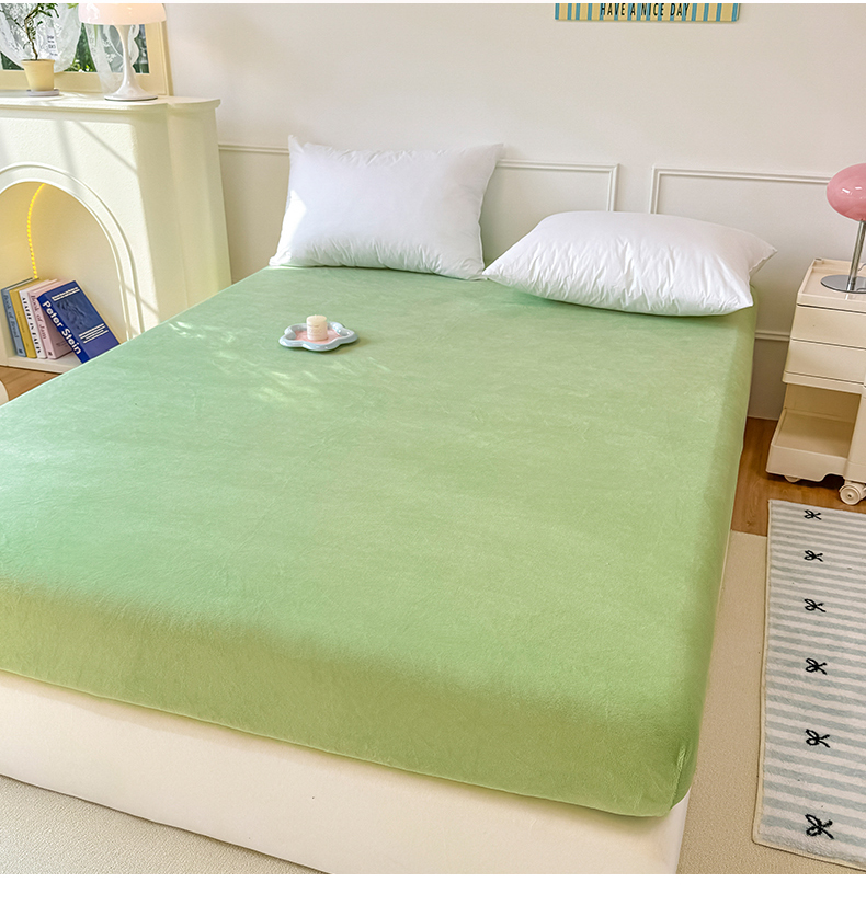 觅妮家纺 2025新款全消光200g保暖牛奶绒纯色简约款床笠 果绿