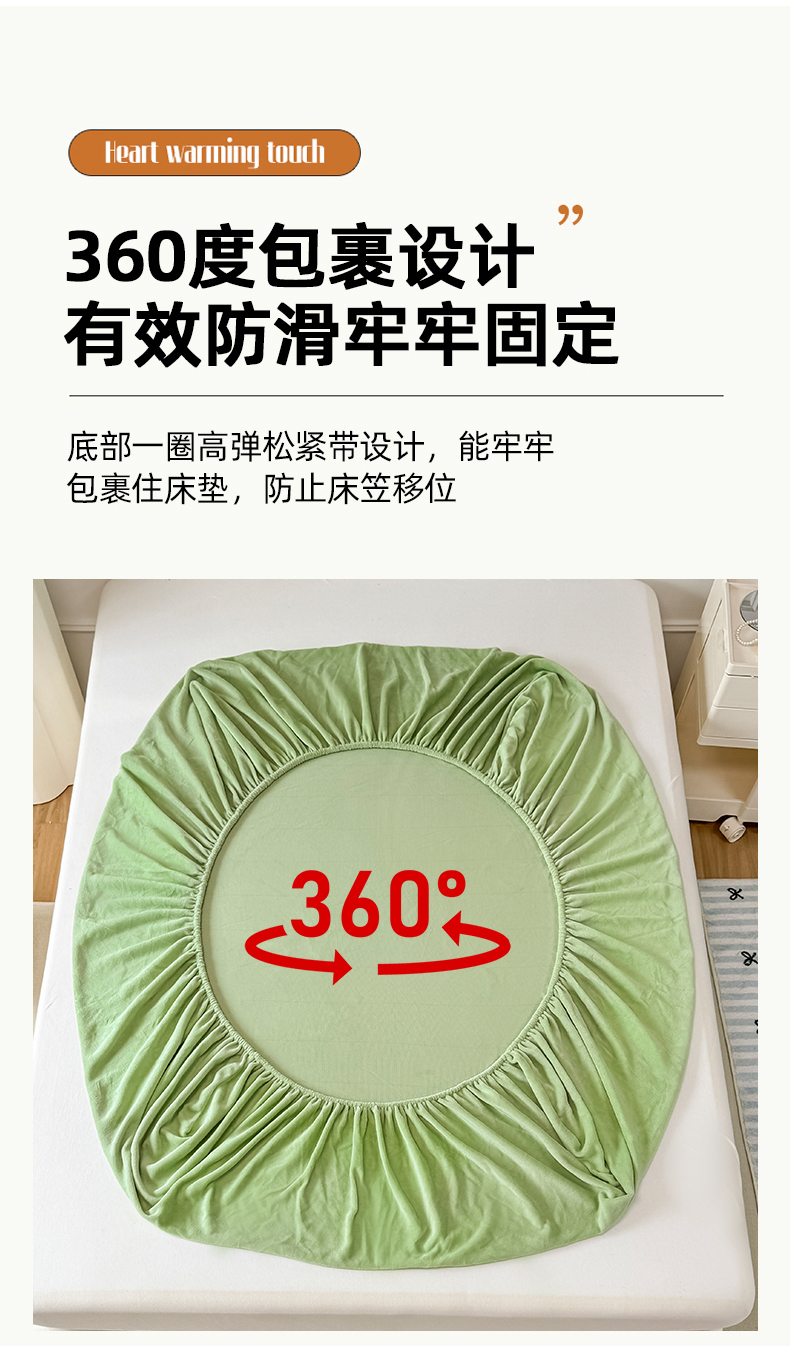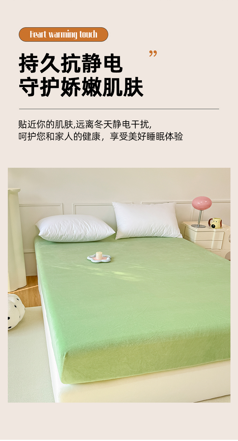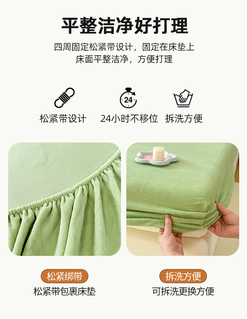 觅妮家纺 2025新款全消光200g保暖牛奶绒纯色简约款床笠 果绿