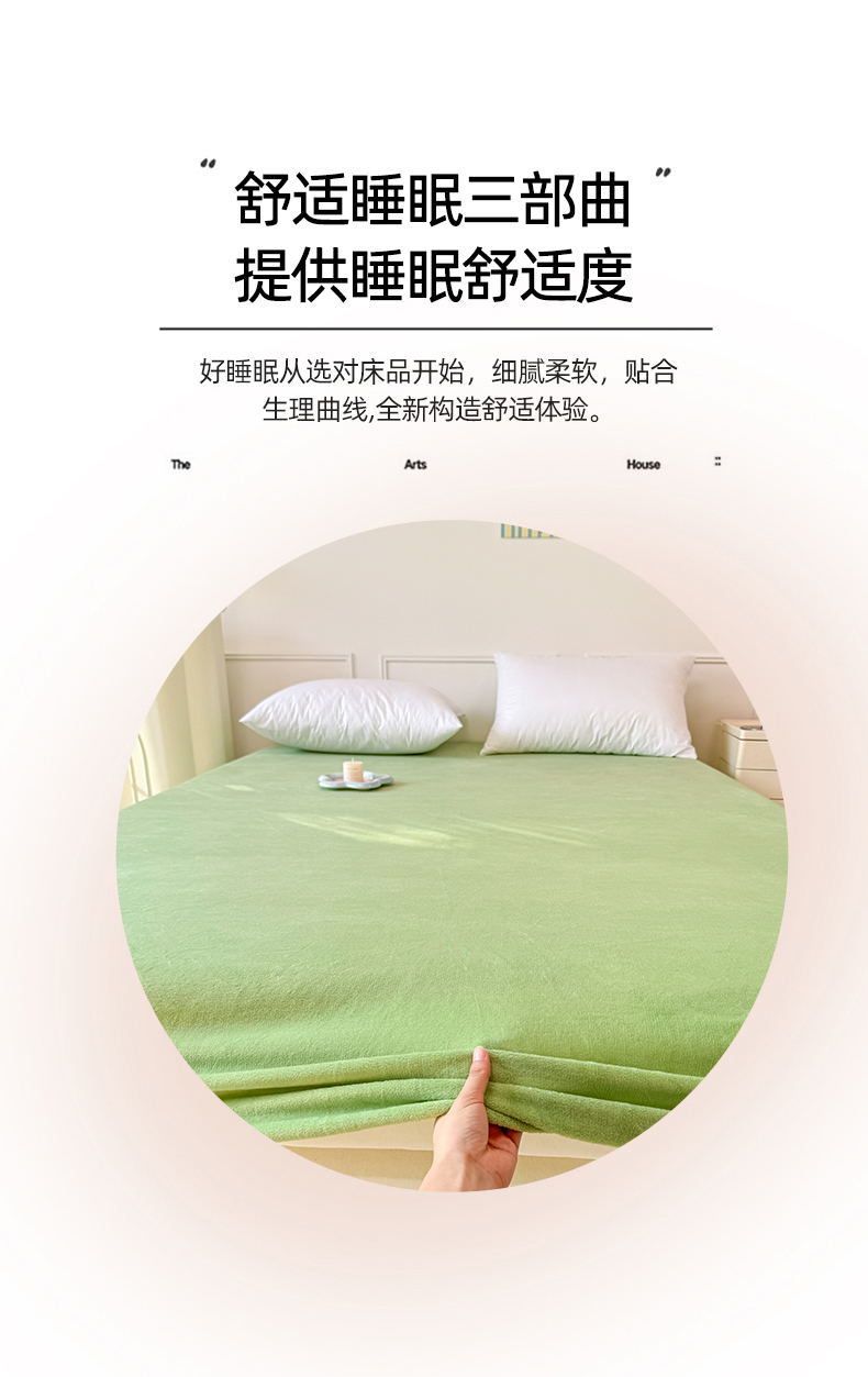 商品名称:觅妮家纺 2025新款全消光200g保暖牛奶绒纯色简约款床笠 果绿