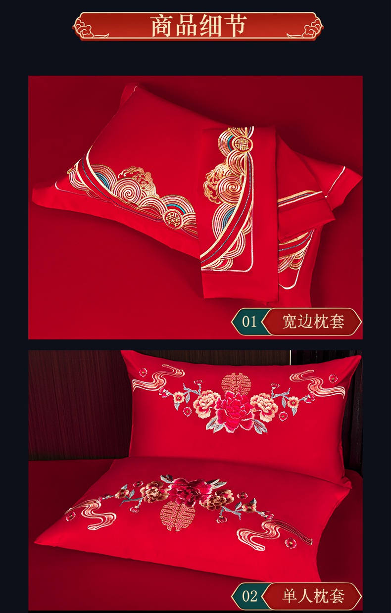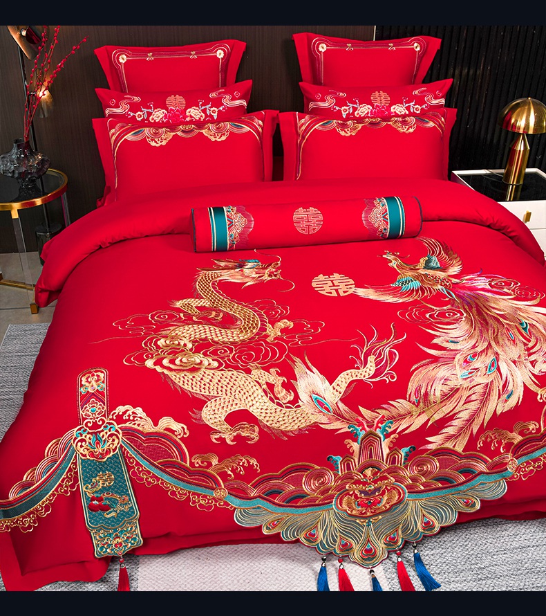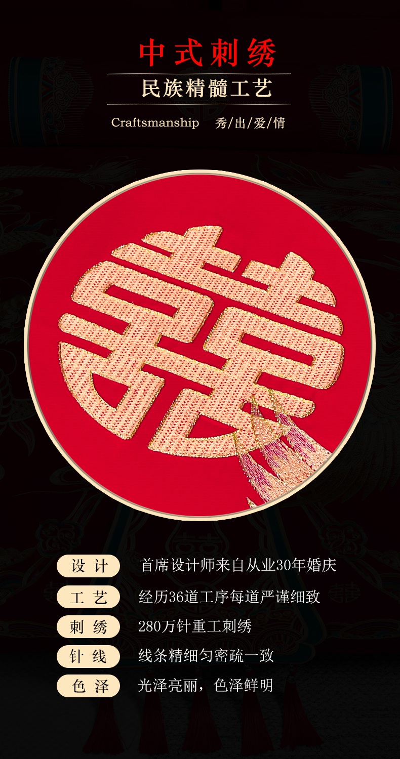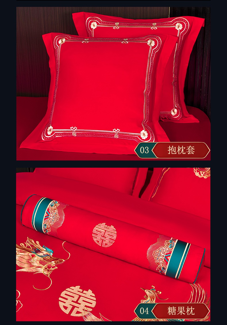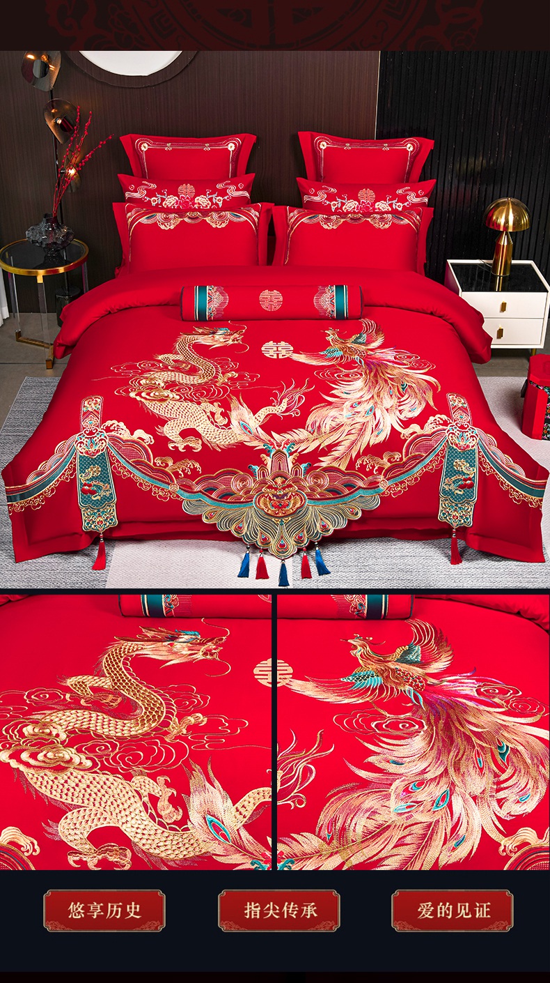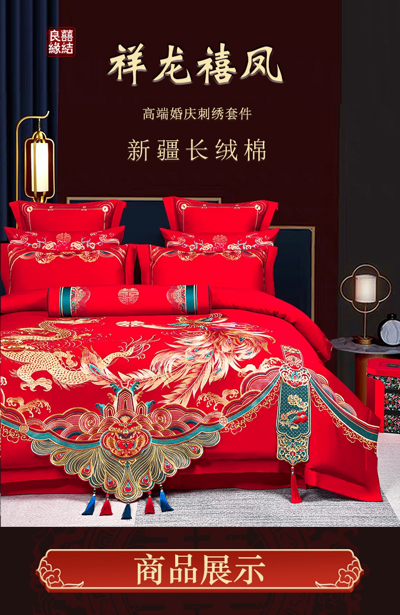 皇潮婚庆馆 新款新疆长绒棉高端婚庆刺绣四件套 祥龙禧凤
