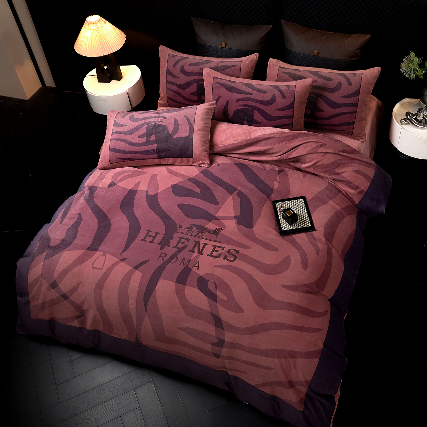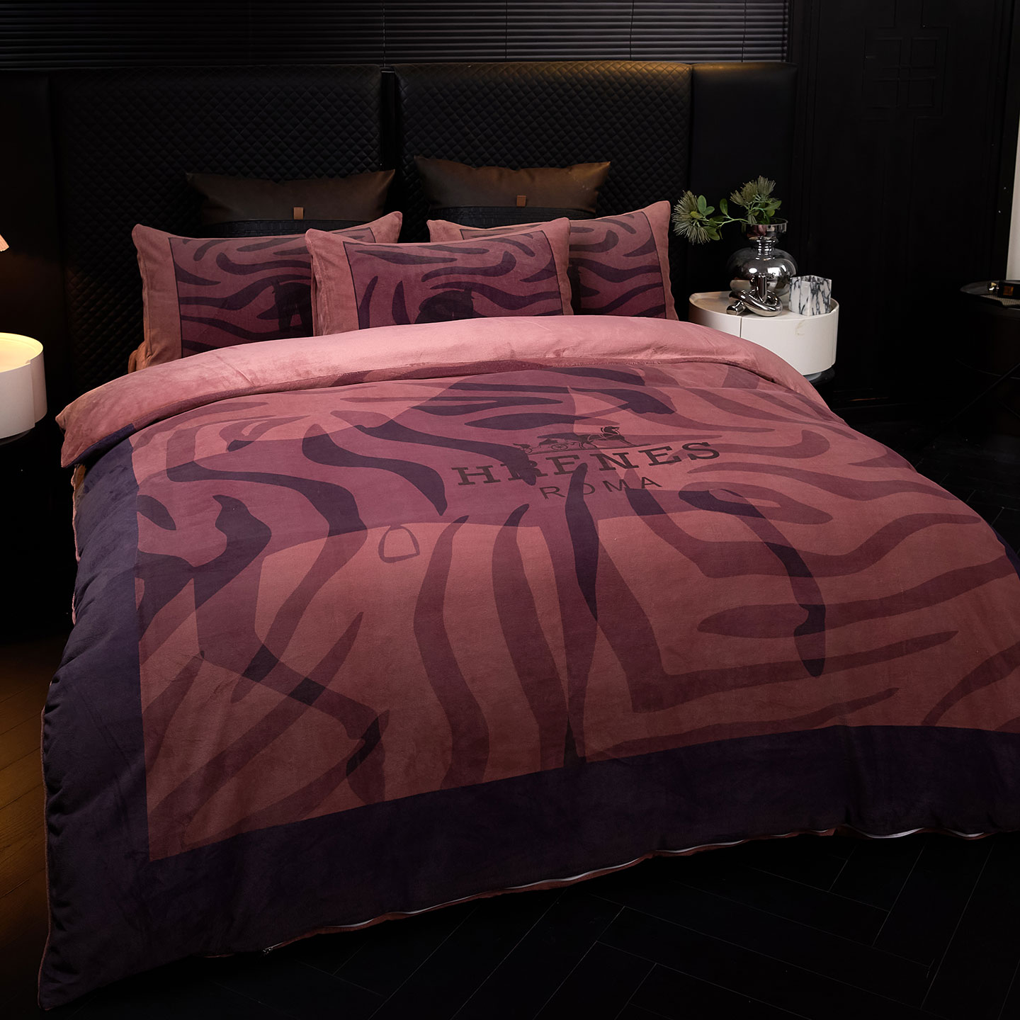 新方向 2025新款240克A类全消光数码印花牛奶绒四件套-奥弗恩 酒红