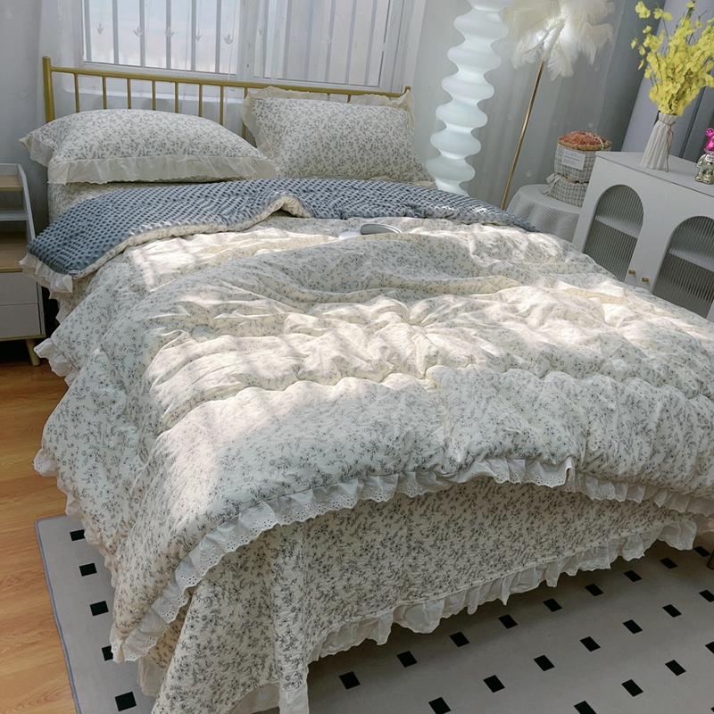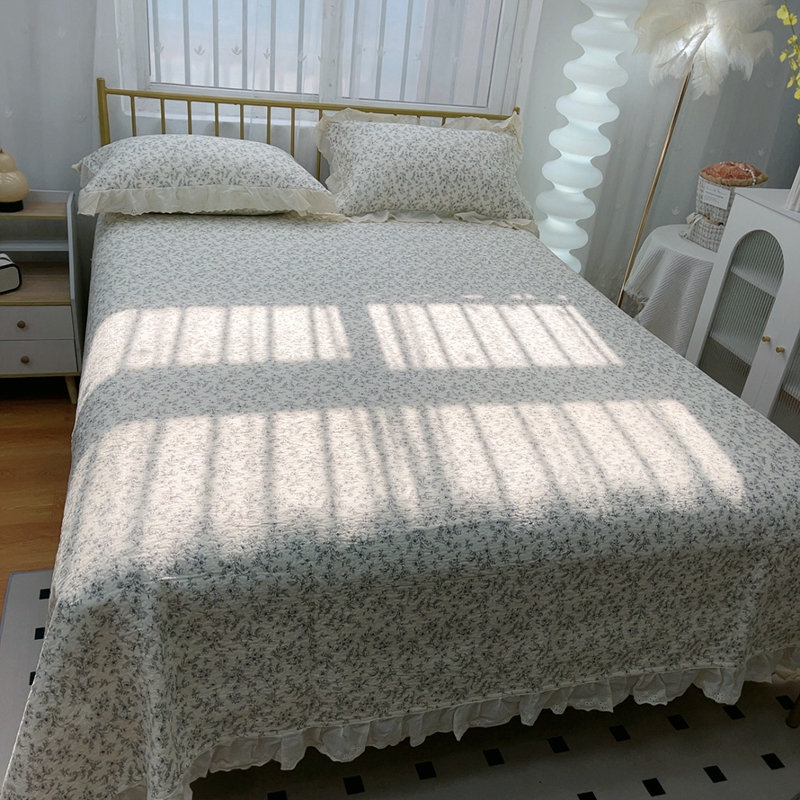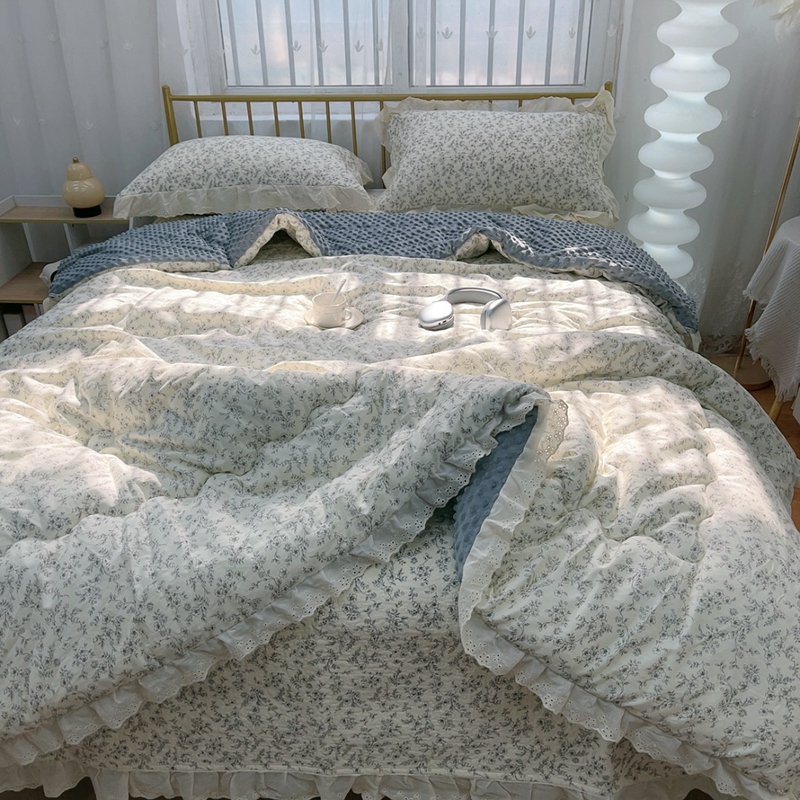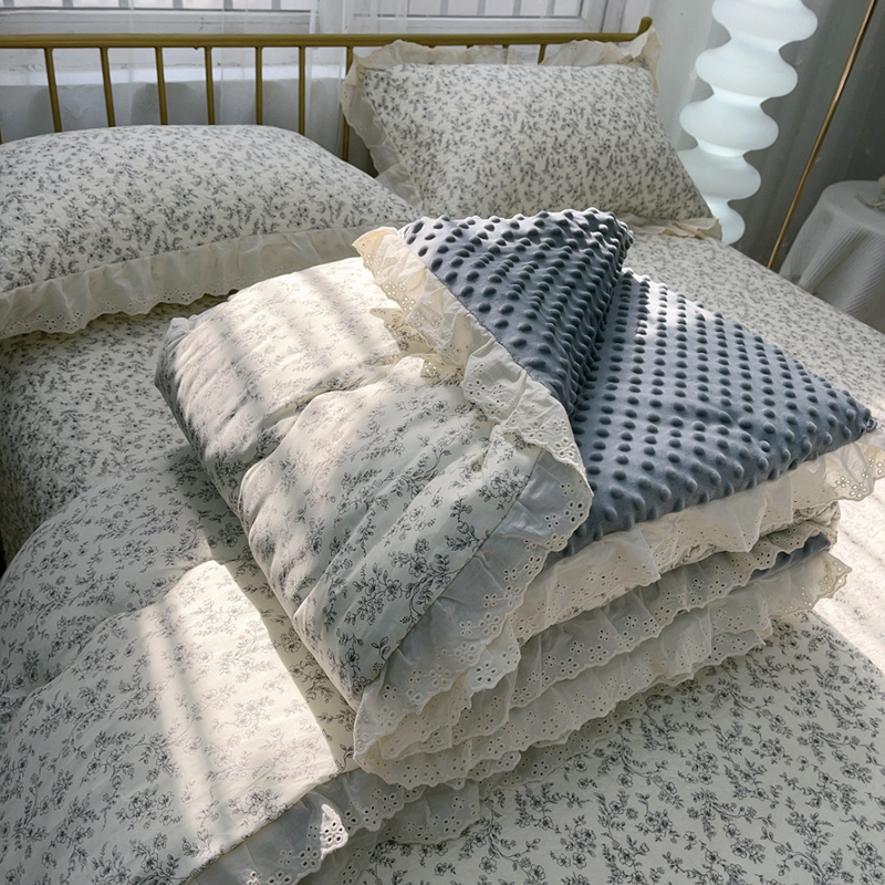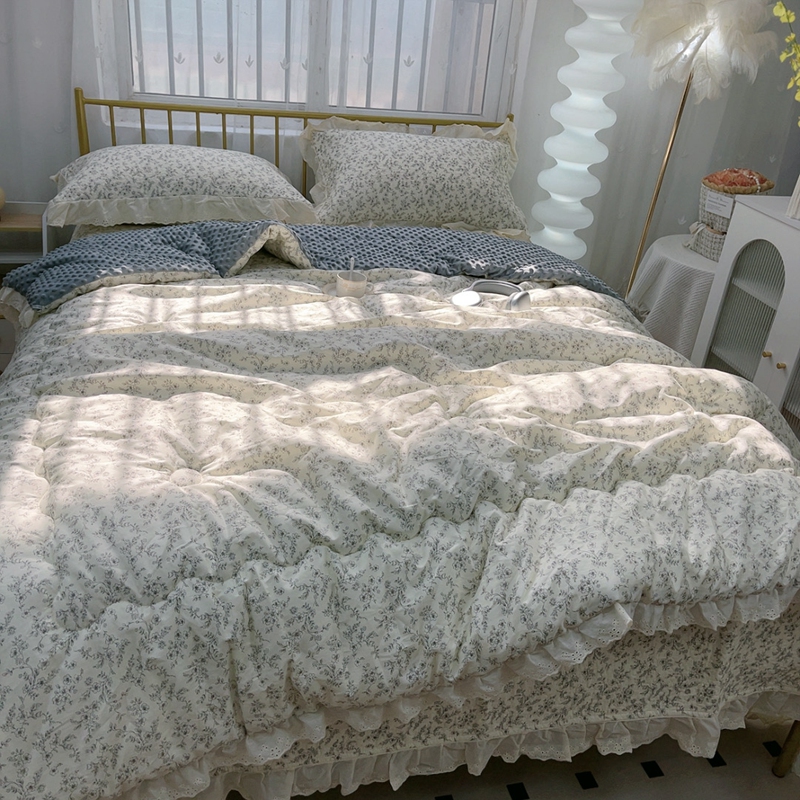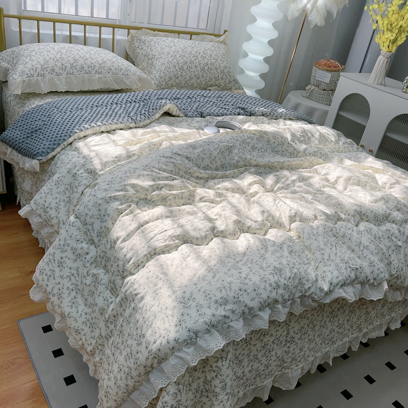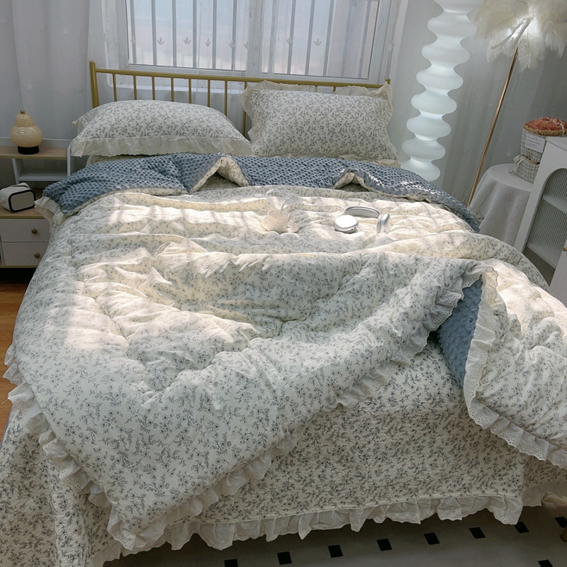 韩版纯棉豆豆被床盖四件套春秋被加厚冬被同款纯棉被套砂洗棉花床盖三件套四季通用 清风