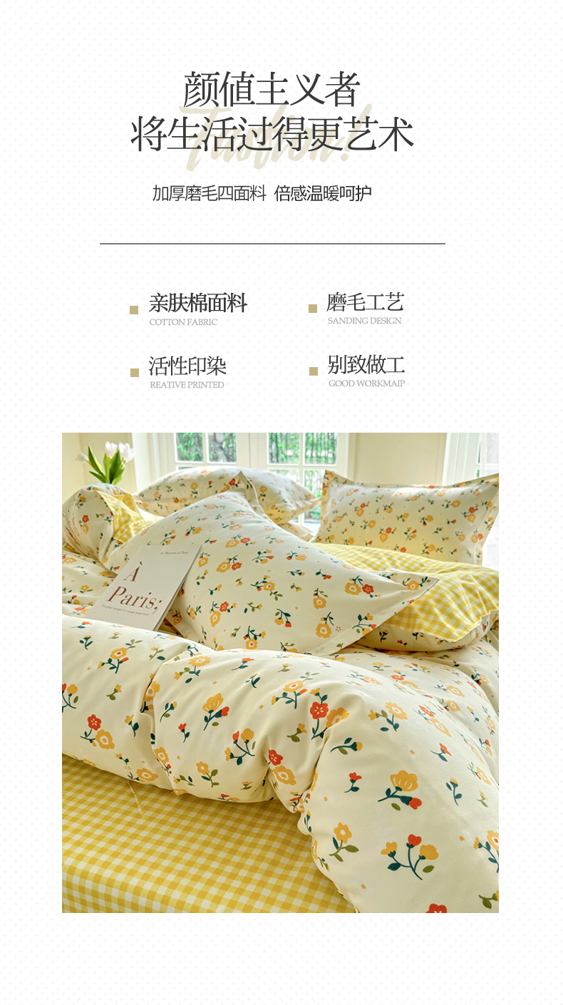 当前位置: 91家纺网 > 商品网购 > 床品套件 > 四件套 > 普通磨毛四件套 > 正莱欣 2025新品加厚生态棉磨毛四件套高克重植物羊绒床单款床笠款四件套大量现货 晨妆