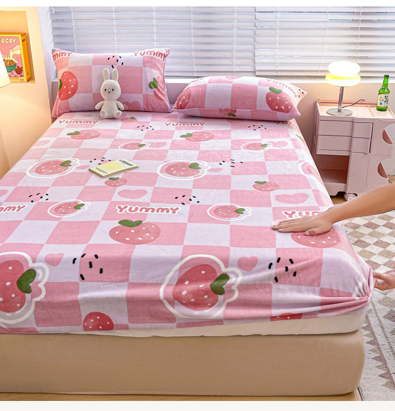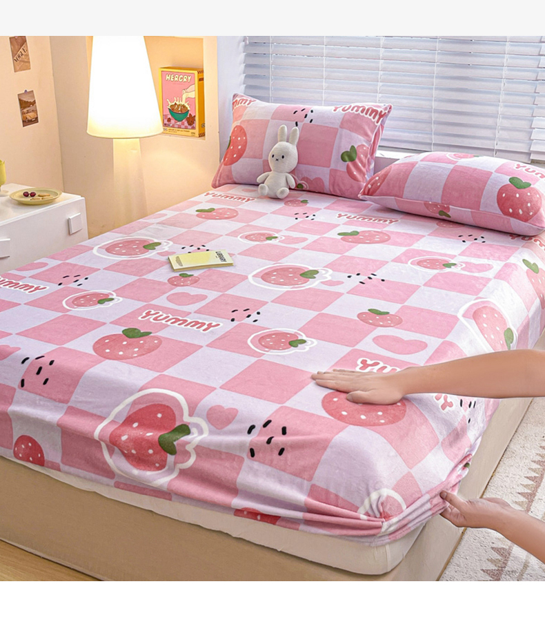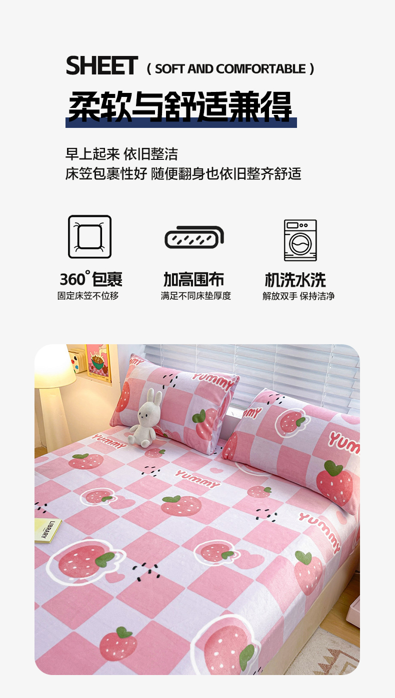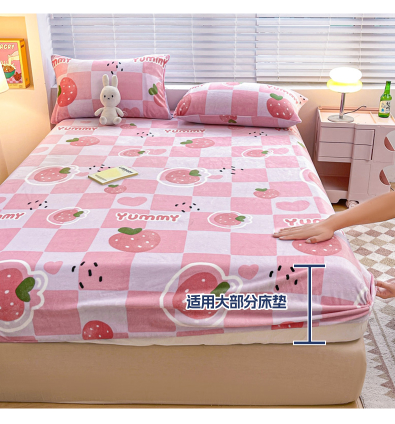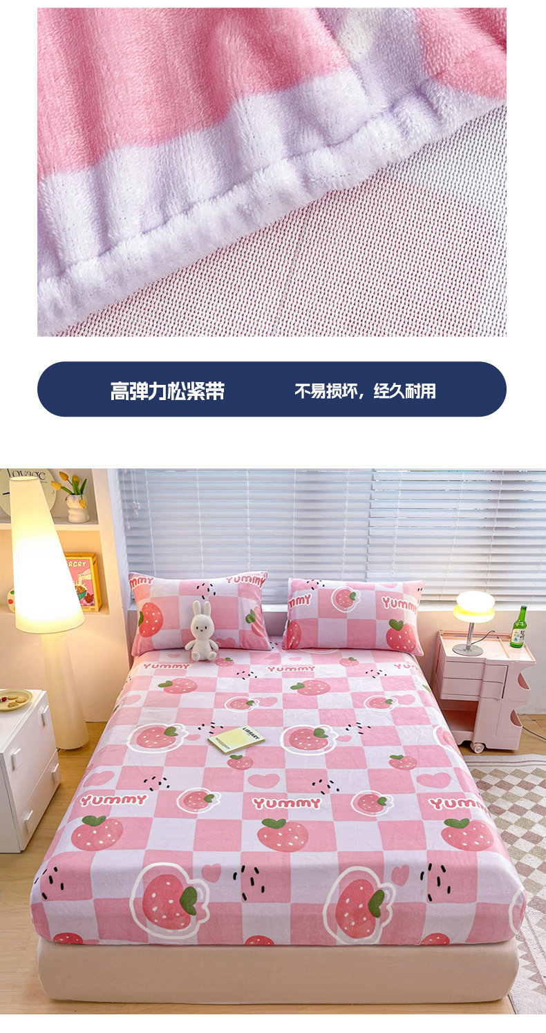 商品名称:芯元素 2024新款牛奶绒印花床笠 甜心草莓