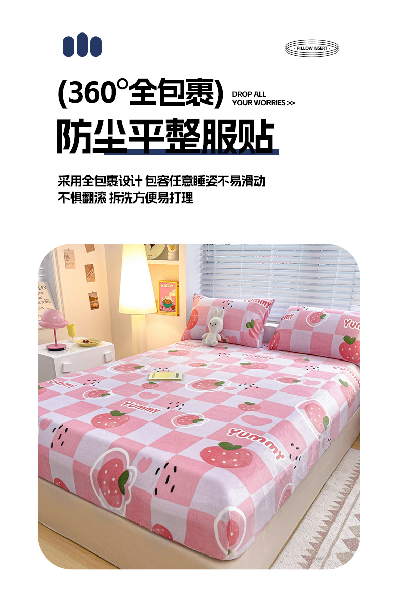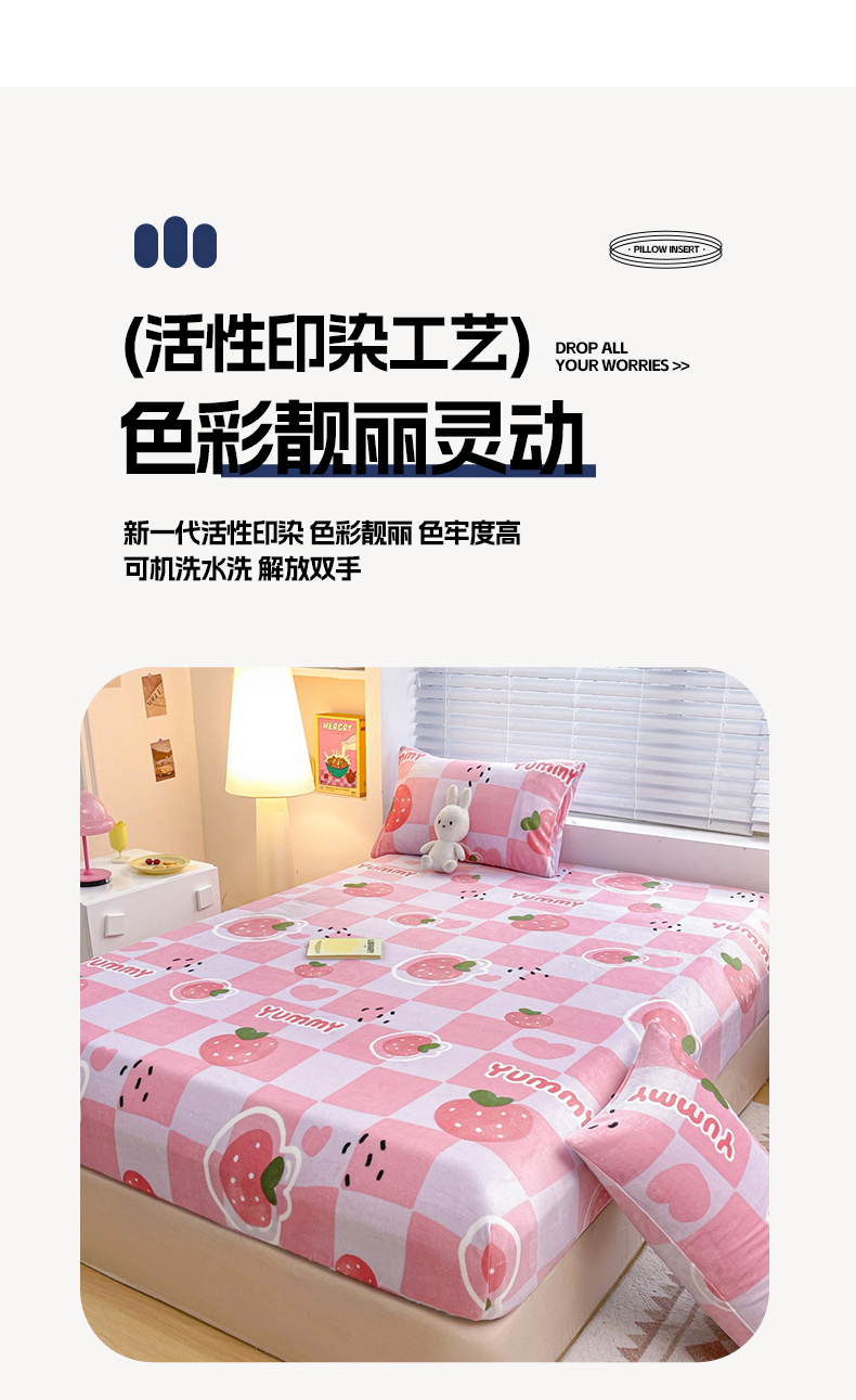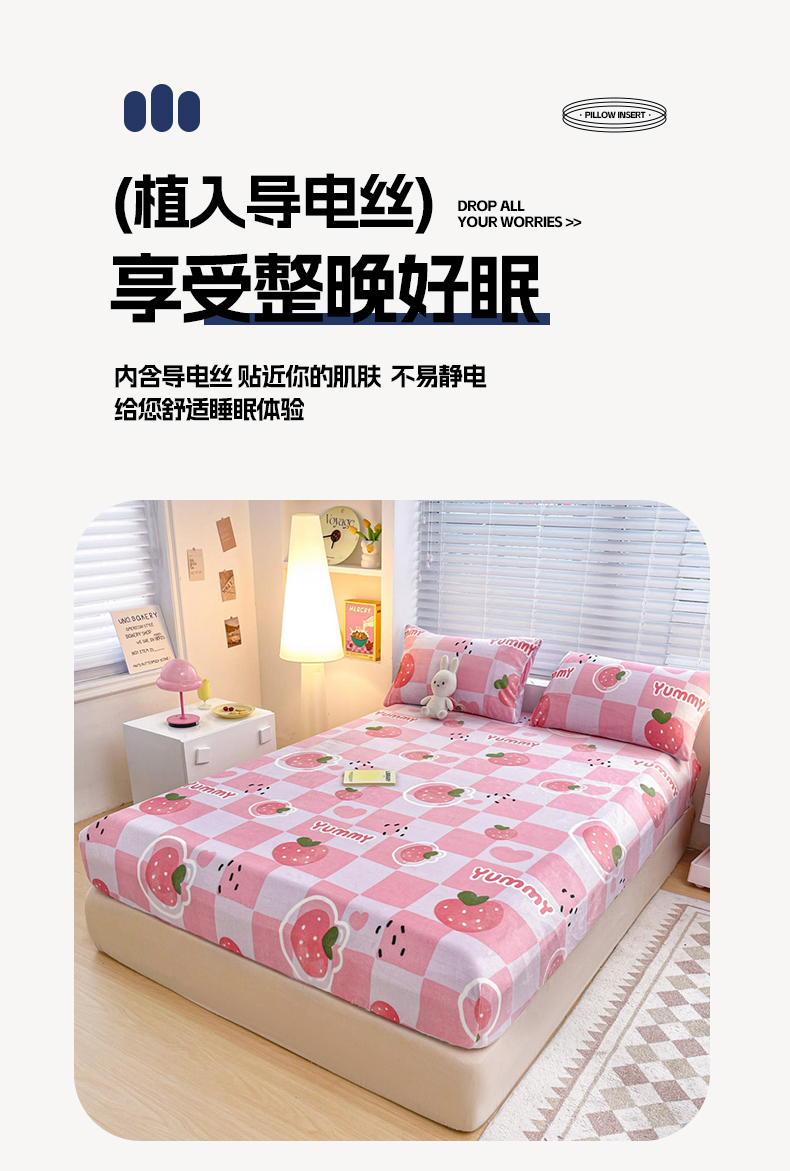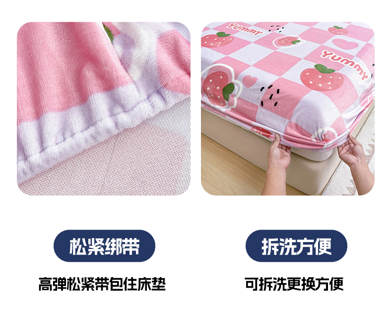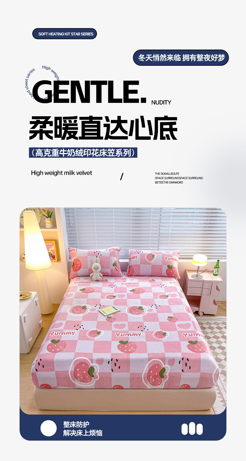 商品名称:芯元素 2024新款牛奶绒印花床笠 甜心草莓