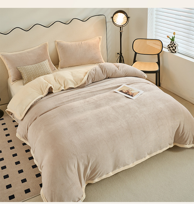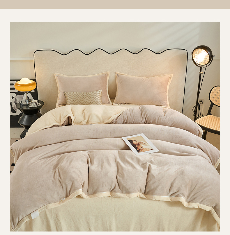 当前位置: 91家纺网 > 商品网购 > 床品套件 > 四件套 > 牛奶绒四件套 > (买家秀爆款不断货)A类母婴级简约纯色宽边款双拼牛奶绒珊瑚绒四件套雪花绒四件套纯色牛奶绒四件套 瑞丽-米咖