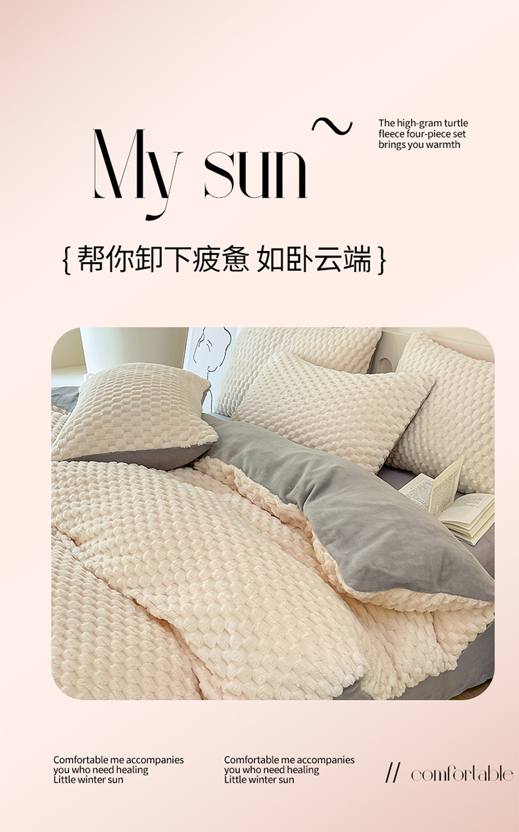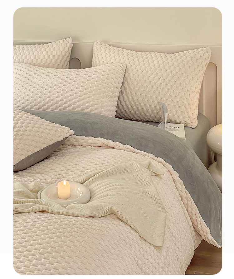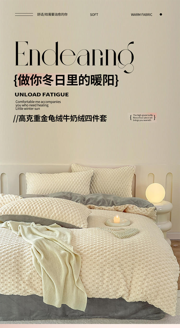 当前位置: 91家纺网 > 商品网购 > 床品套件 > 四件套 > 牛奶绒四件套 > (买家秀爆款不断货)A类母婴级简约纯色双拼牛奶绒珊瑚绒四件套雪花绒四件套纯色金龟绒牛奶绒四件套 奶白-灰