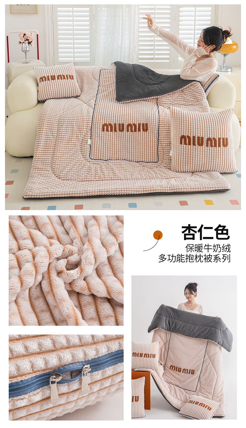 商品名称:吉利家居 2024新款MIu系列牛奶绒抱枕被(小号控价58;大号控价89) MIu-杏仁色