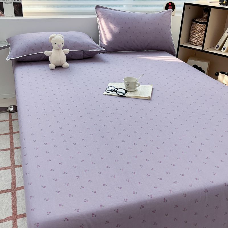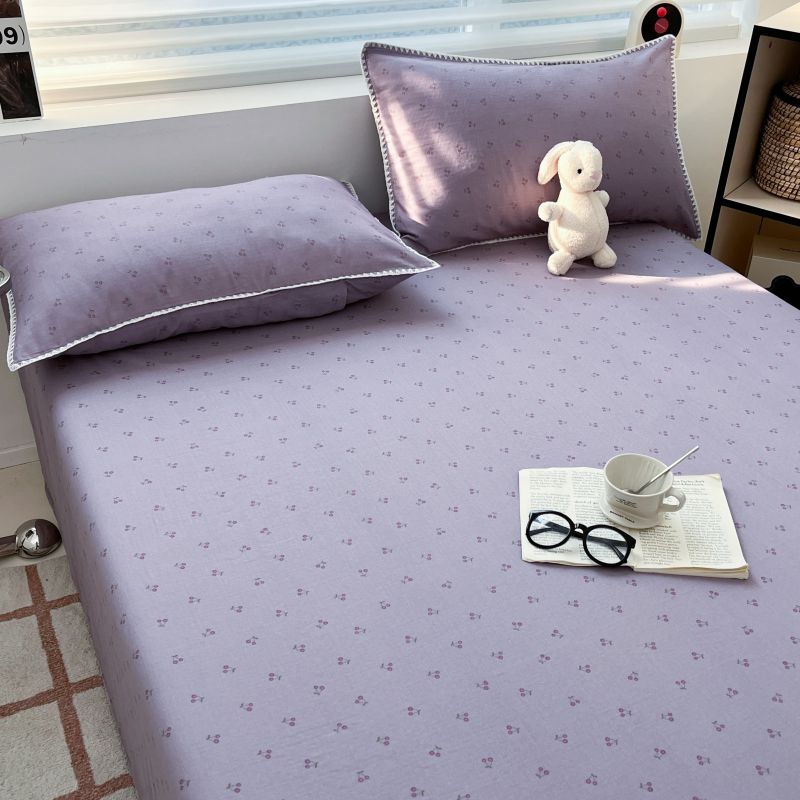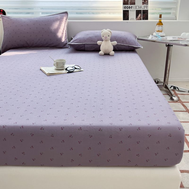 (买家秀 不断货)A类母婴级全棉纯棉床单纯棉全棉床笠双层纱床笠床罩卡通床笠儿童床垫套保护罩--单床笠 紫樱桃(床笠)