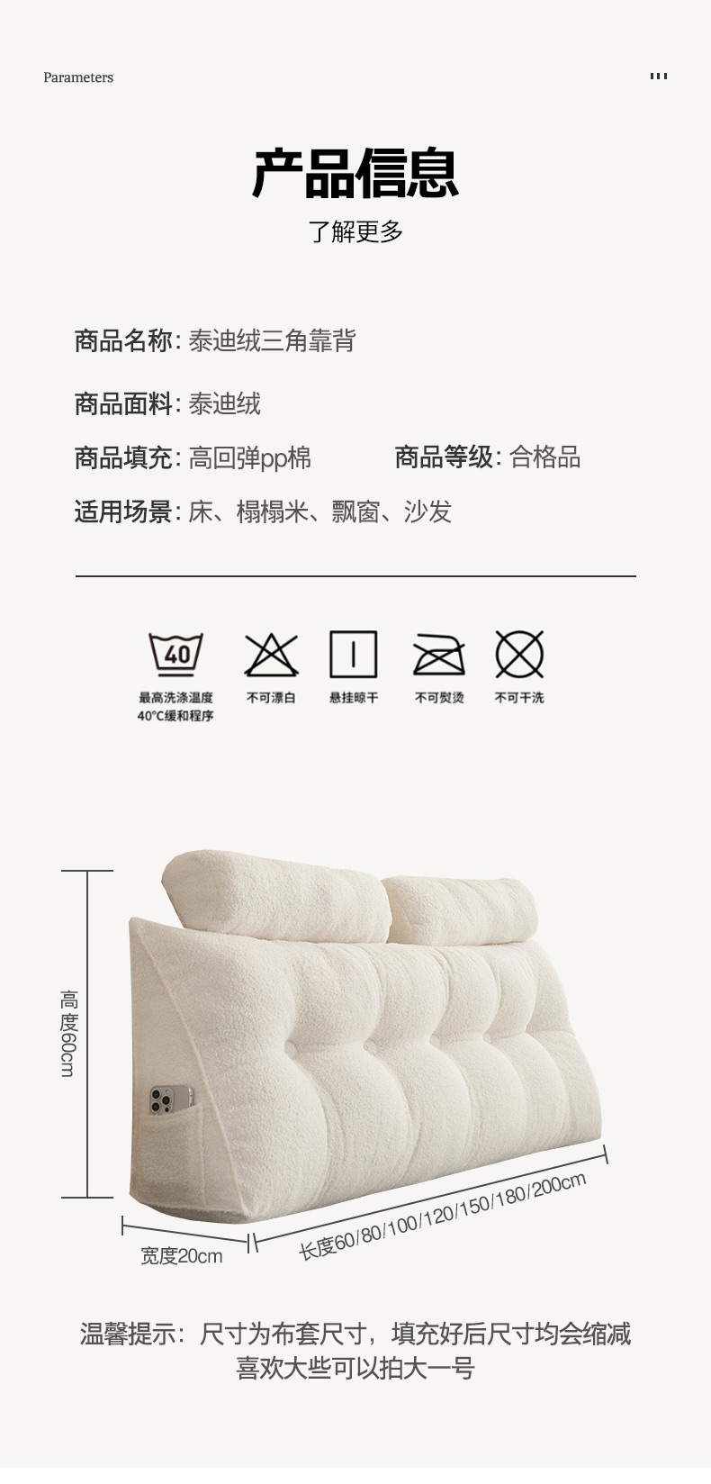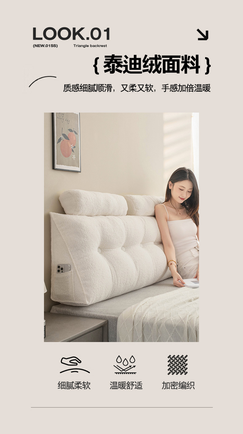 当前位置: 91家纺网 > 商品网购 > 居家日用 > 靠垫/抱枕 > 一兰家纺 2024新款泰迪绒三角靠垫床头大靠背腰靠沙发靠背可拆洗-楠妮系列 楠妮-破境白