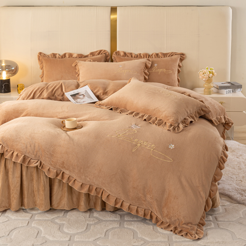 当前位置: 91家纺网 > 商品网购 > 床品套件 > 四件套 > 牛奶绒四件套 > 慧菲 2025新款刺绣夹棉牛奶绒床裙四件套-玫瑰花语 玫瑰花语-咖