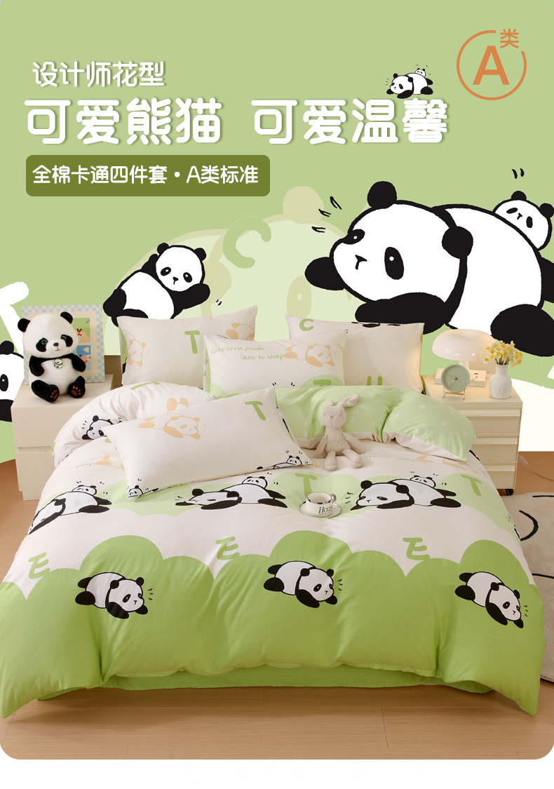 当前位置: 91家纺网 > 商品网购 > 床品套件 > 四件套 > 全棉普通四件套 > 金鑫汇家纺 2025新款全棉印花四件套 可爱熊猫