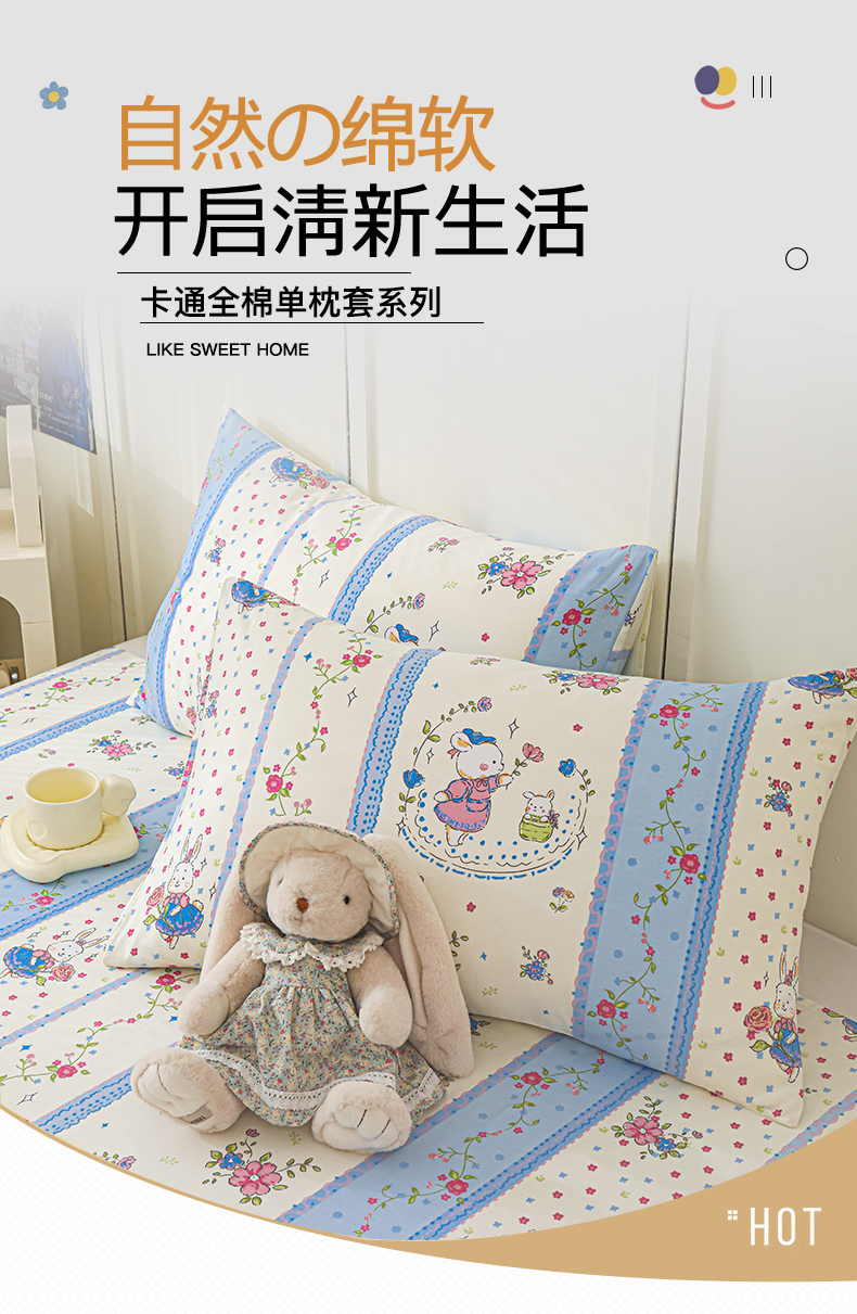 商品名称:金鑫汇家纺 2025新款超好卖全棉单枕套 快乐萌兔