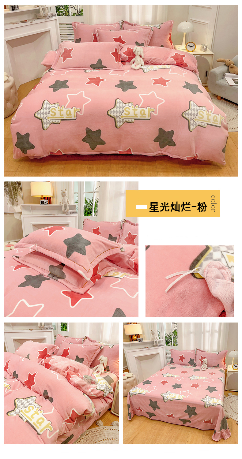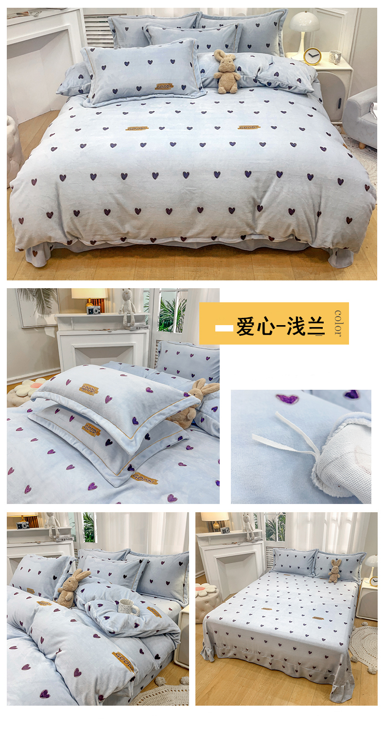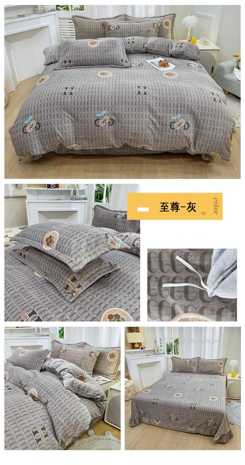 商品名称:(买家秀 爆款不断货)A类母婴级双面牛奶绒四件套珊瑚绒雪花绒四件套AB版高克重牛奶绒四件套纯色牛奶绒 展示图