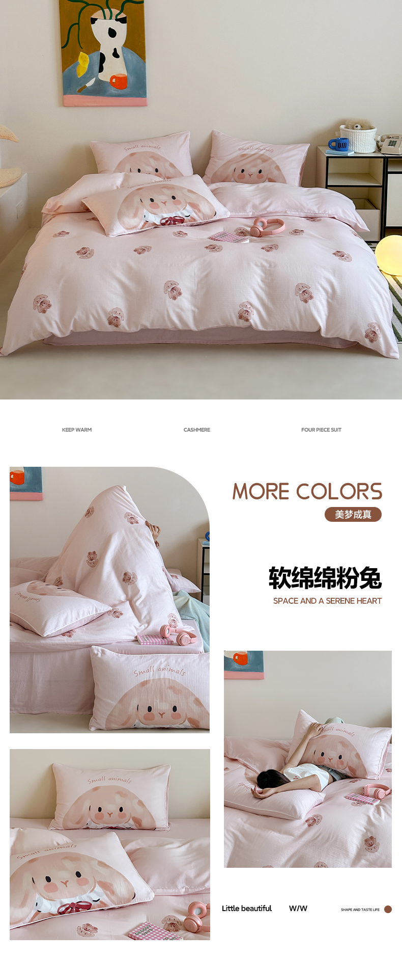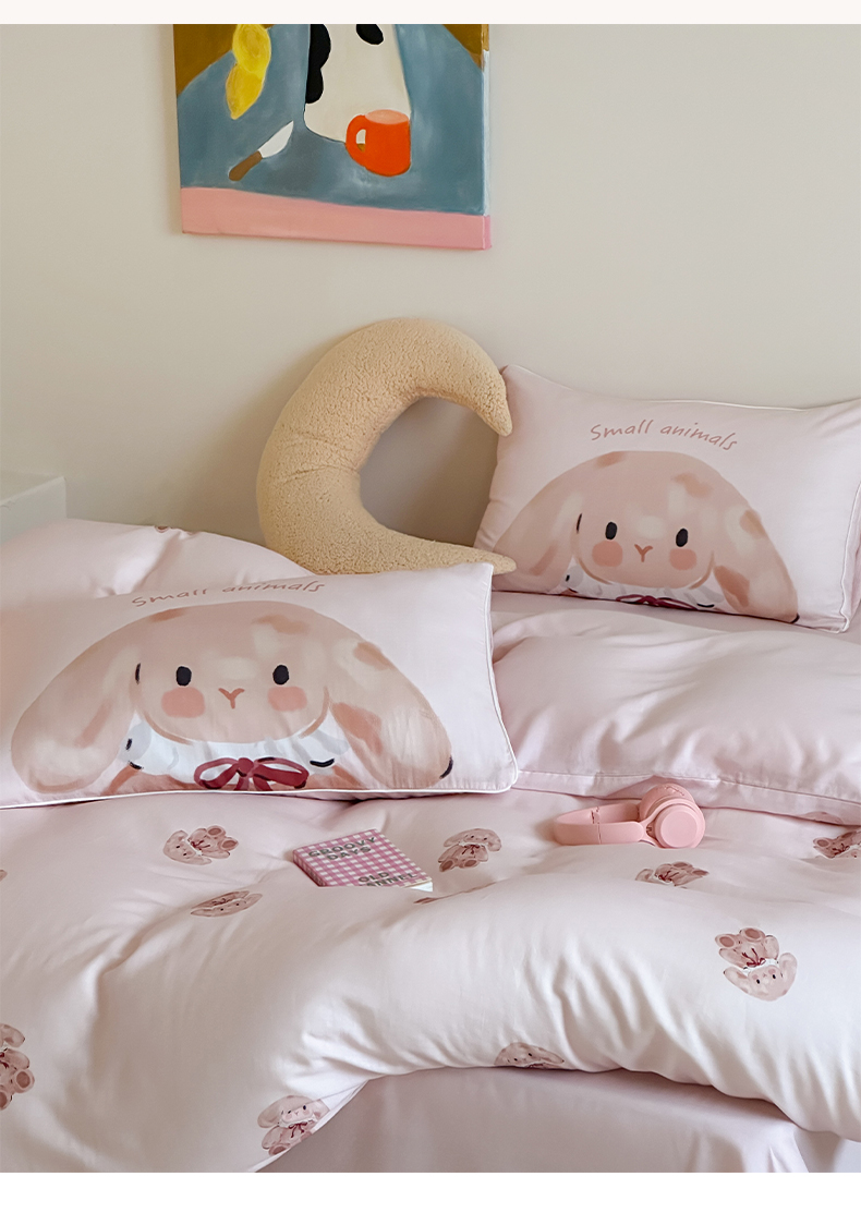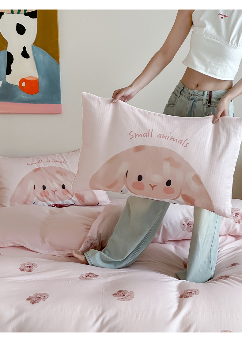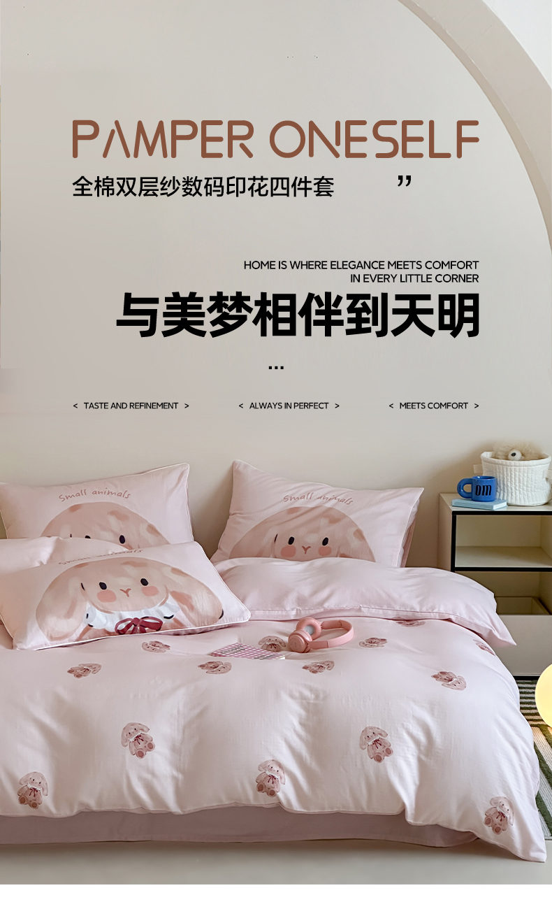 当前位置: 91家纺网 > 商品网购 > 床品套件 > 四件套 > 全棉普通四件套 > 卡巴伦家纺 2025新款ins韩风A类双层纱数码印花四件套【全网控价(折后券后)不低于标准278/加大298/小号238元】 软绵绵粉兔