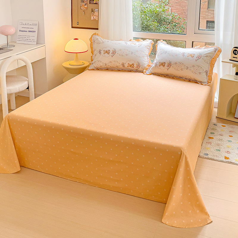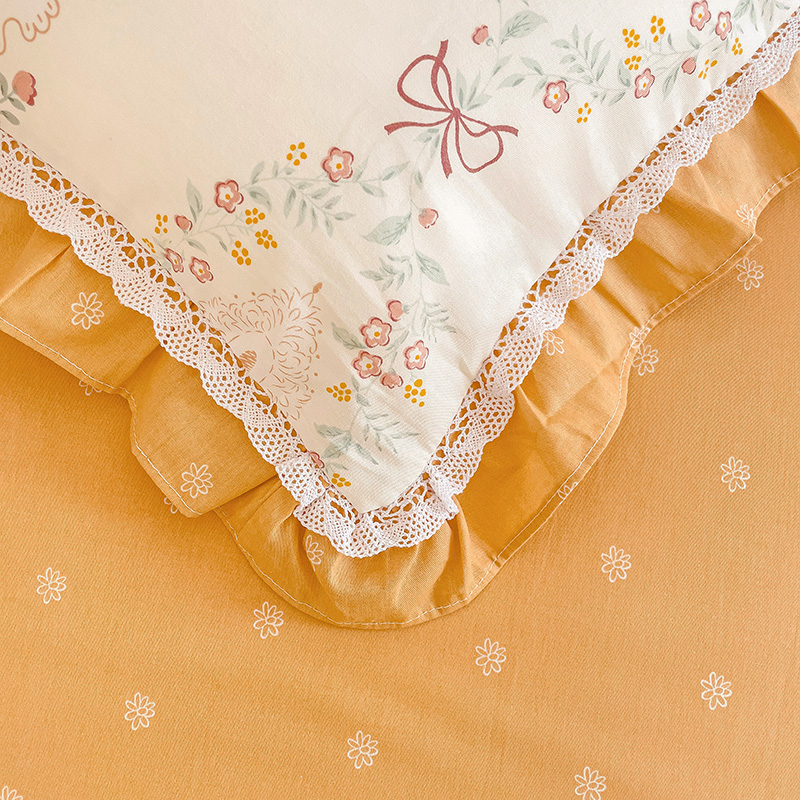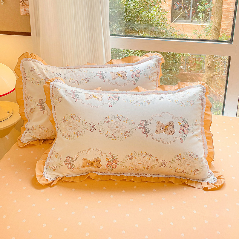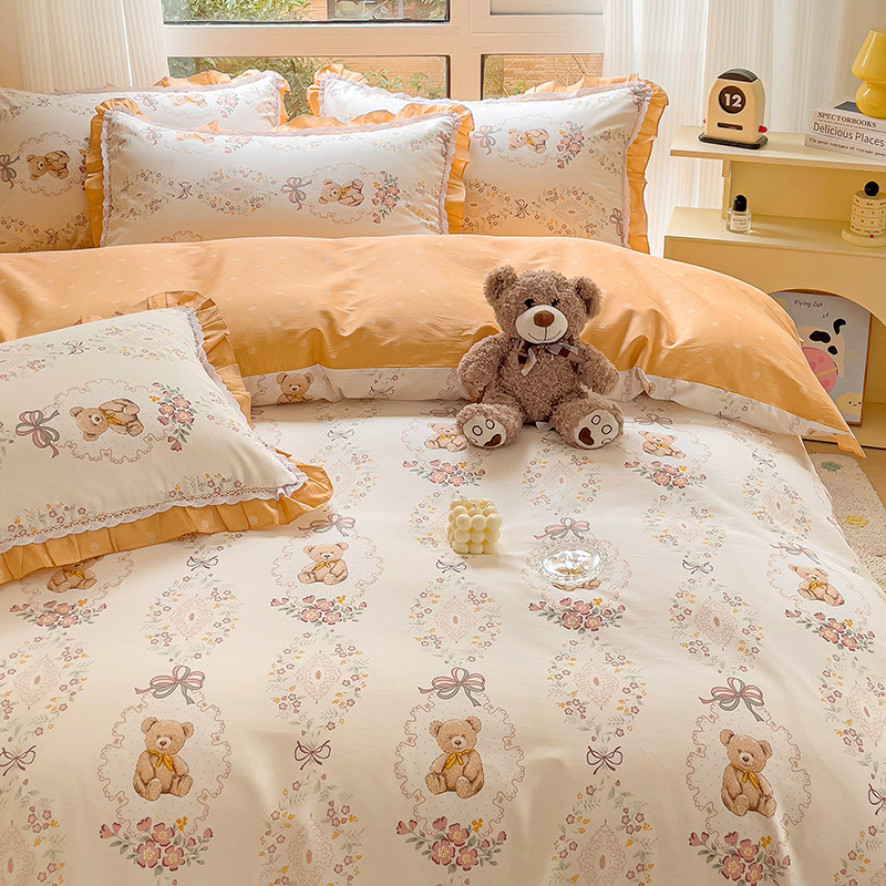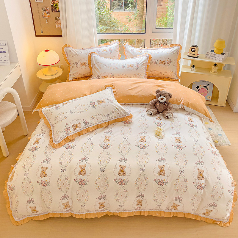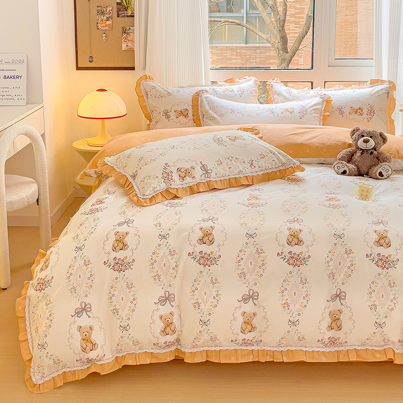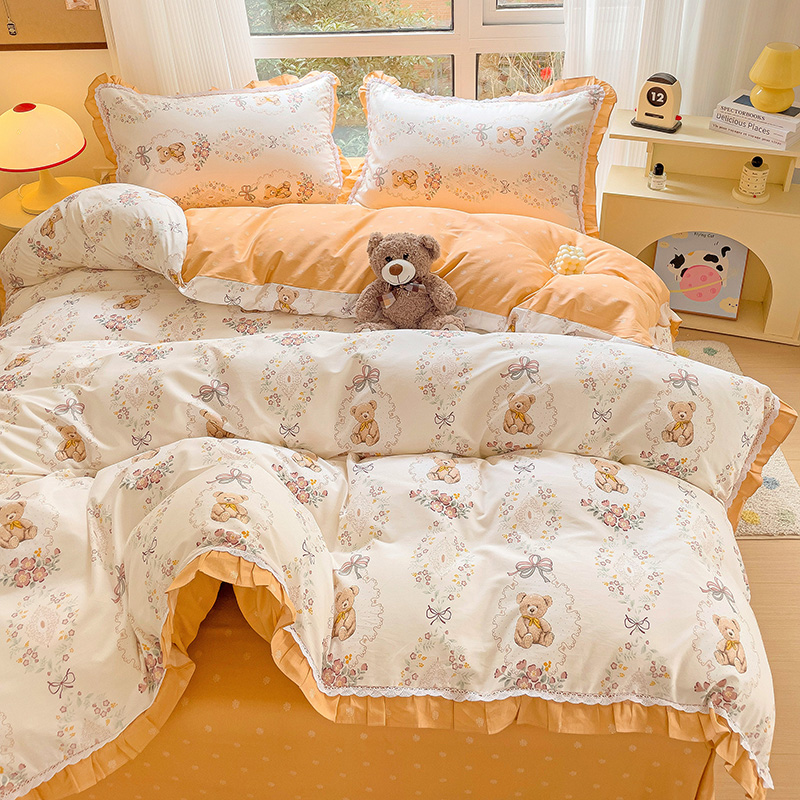 棉生活家纺 2025新款全棉小清新花边款蕾丝四件套 咕嘟小熊