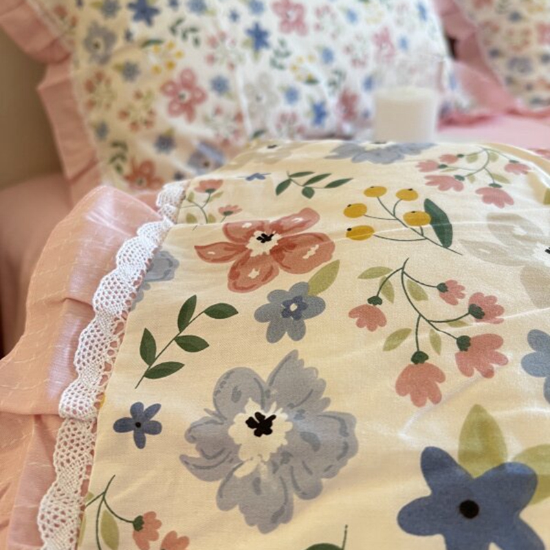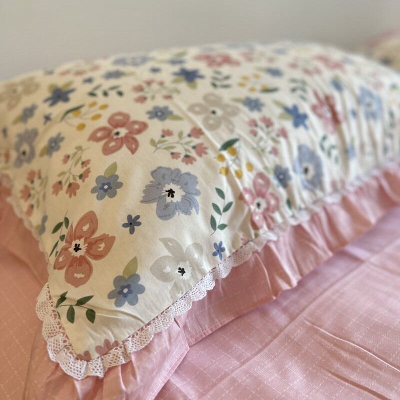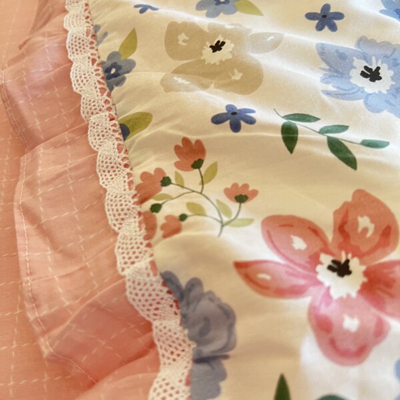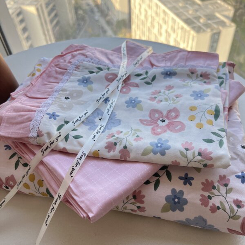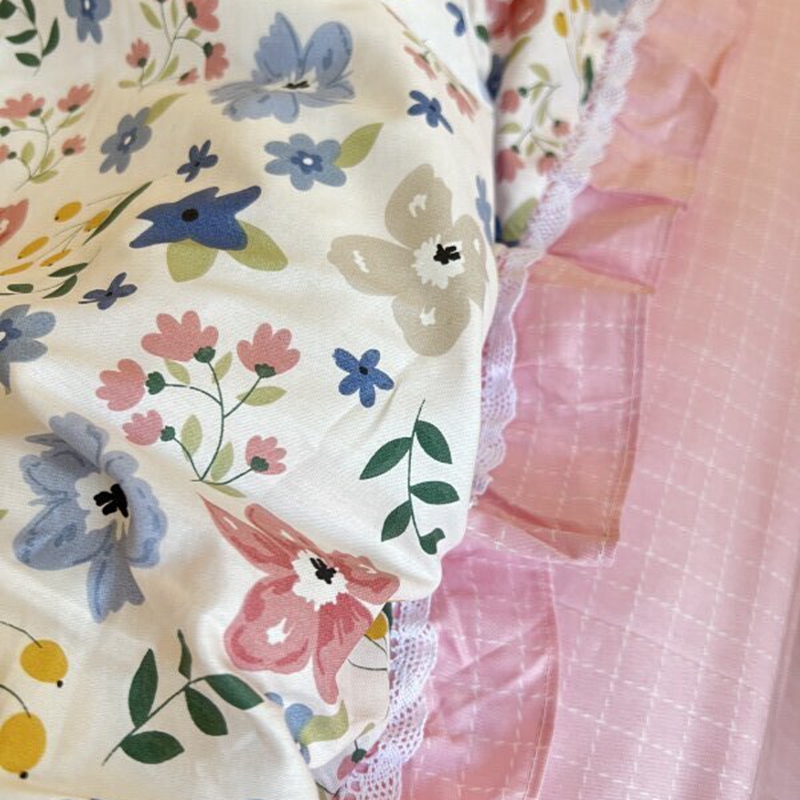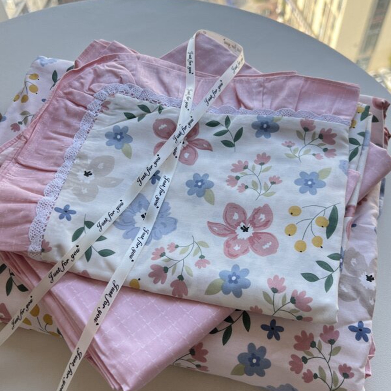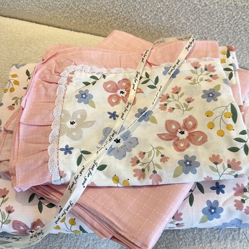 棉生活家纺 2025新款全棉小清新花边款蕾丝四件套 春日田田
