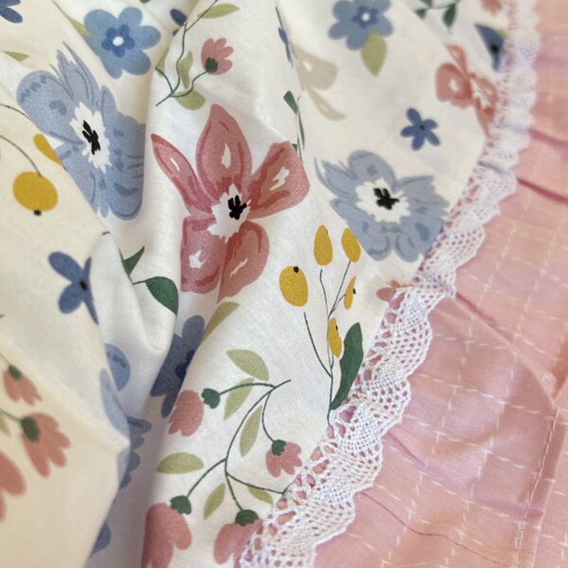 商品名称:棉生活家纺 2025新款全棉小清新花边款蕾丝四件套 春日田田