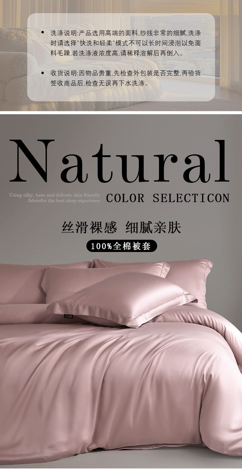 商品名称:618家纺 2025新款50S100支全棉单品系列-单被套 梦幻粉