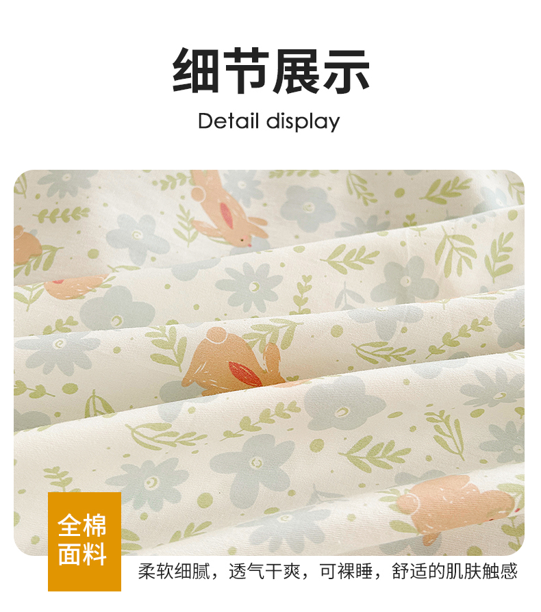 商品名称:柠馨 2025新款13372全棉床单床笠枕套被套单品系列-单床笠 欢乐兔