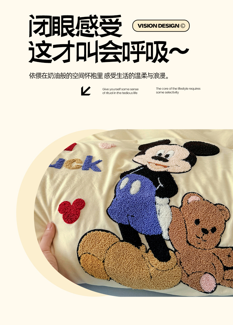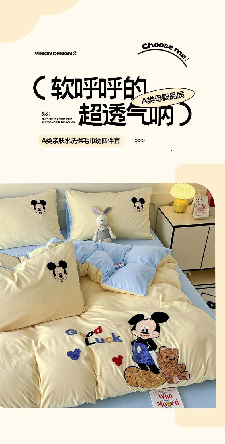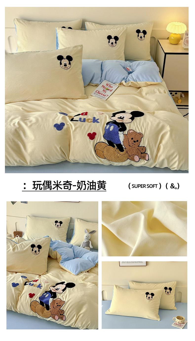 当前位置: 91家纺网 > 商品网购 > 床品套件 > 四件套 > 水洗棉四件套 > 优卡迪家纺馆 2025新款110克水洗棉毛巾绣四件套【下载文件夹包含买家秀】 玩偶米奇-奶油黄