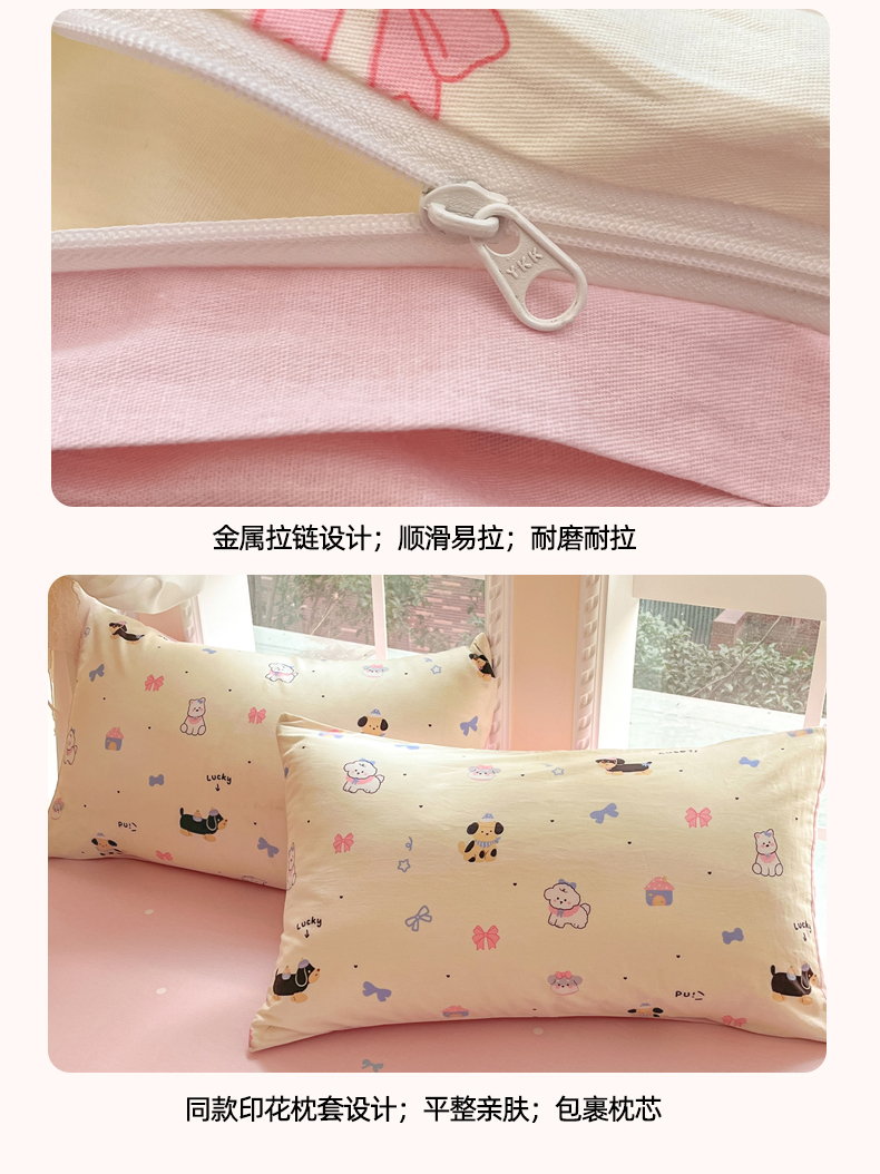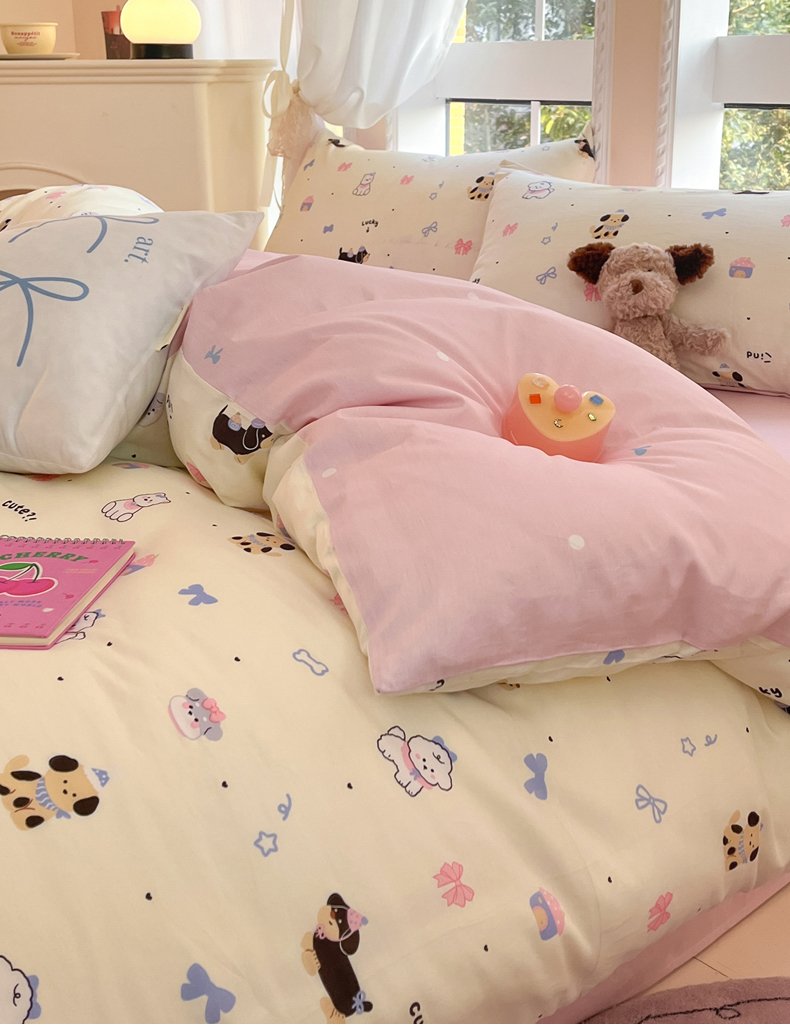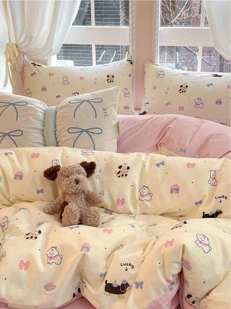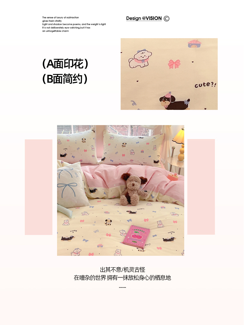 当前位置: 91家纺网 > 商品网购 > 床品套件 > 四件套 > 全棉普通四件套 > Sweet dreams甜梦 2025新款全棉印花卡通小清新四件套 蝴蝶结小狗