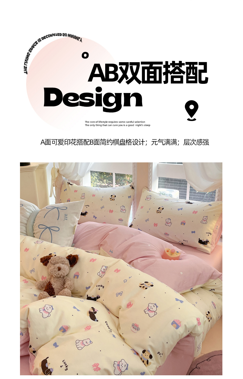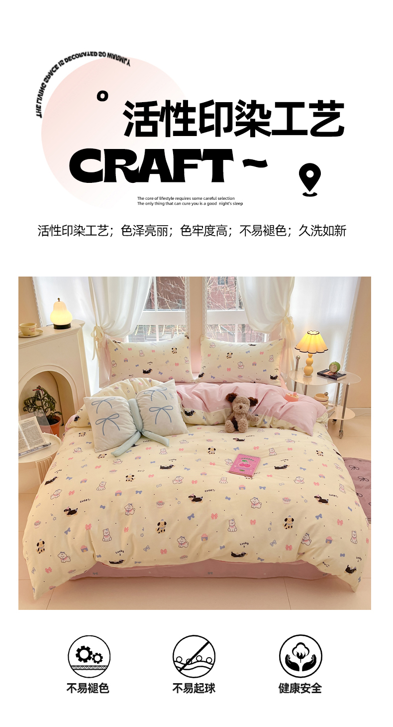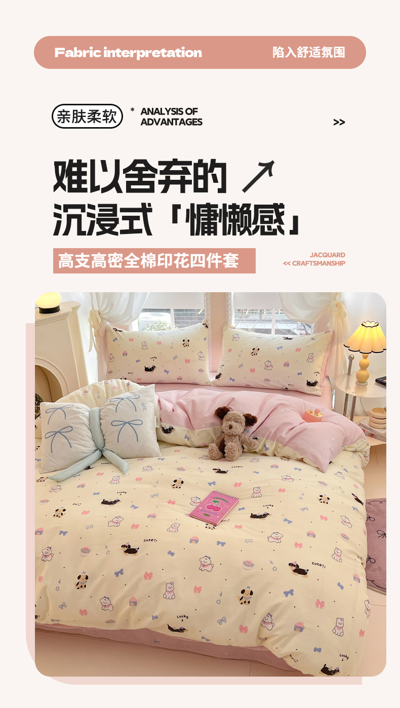 当前位置: 91家纺网 > 商品网购 > 床品套件 > 四件套 > 全棉普通四件套 > Sweet dreams甜梦 2025新款全棉印花卡通小清新四件套 蝴蝶结小狗