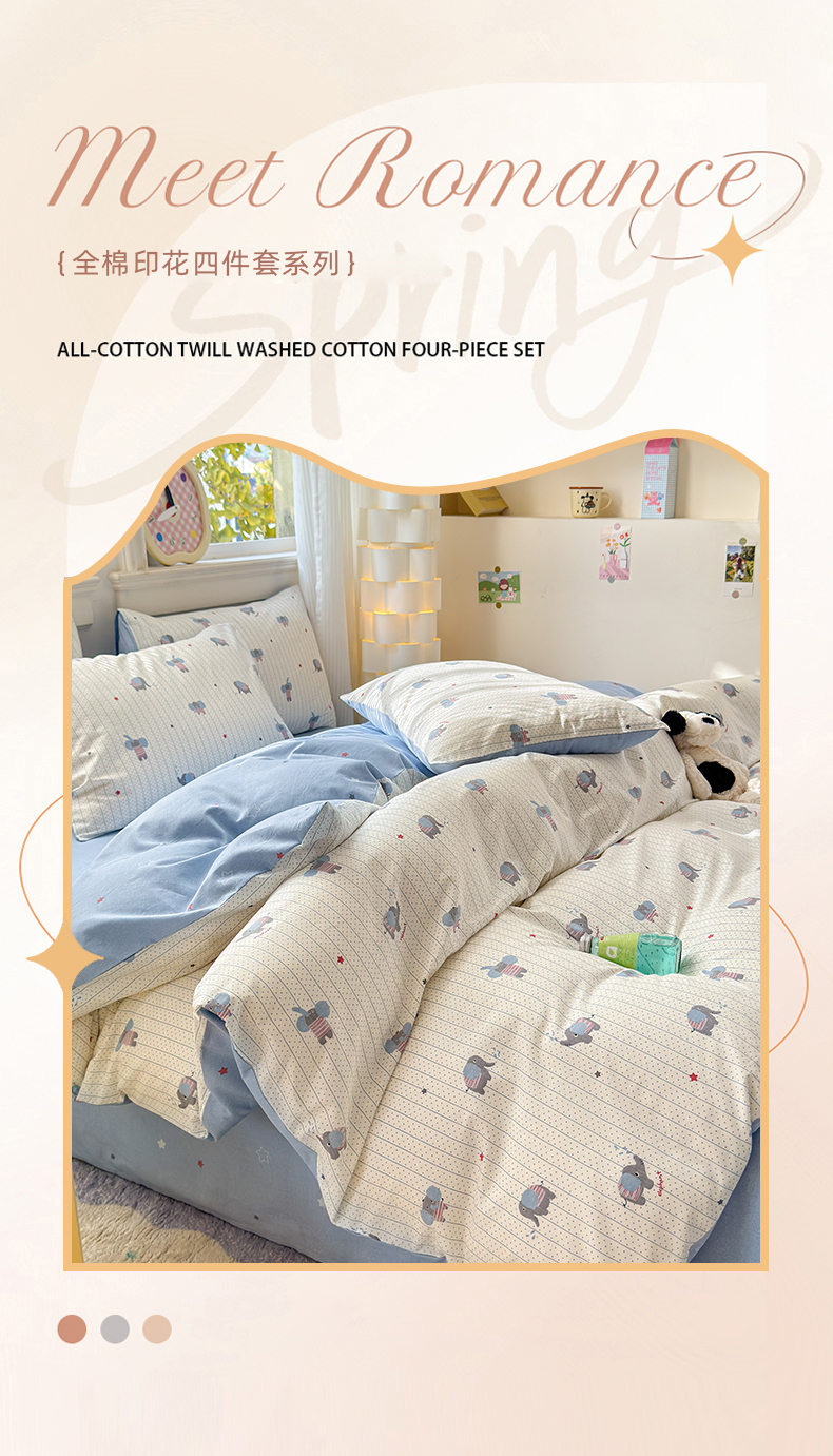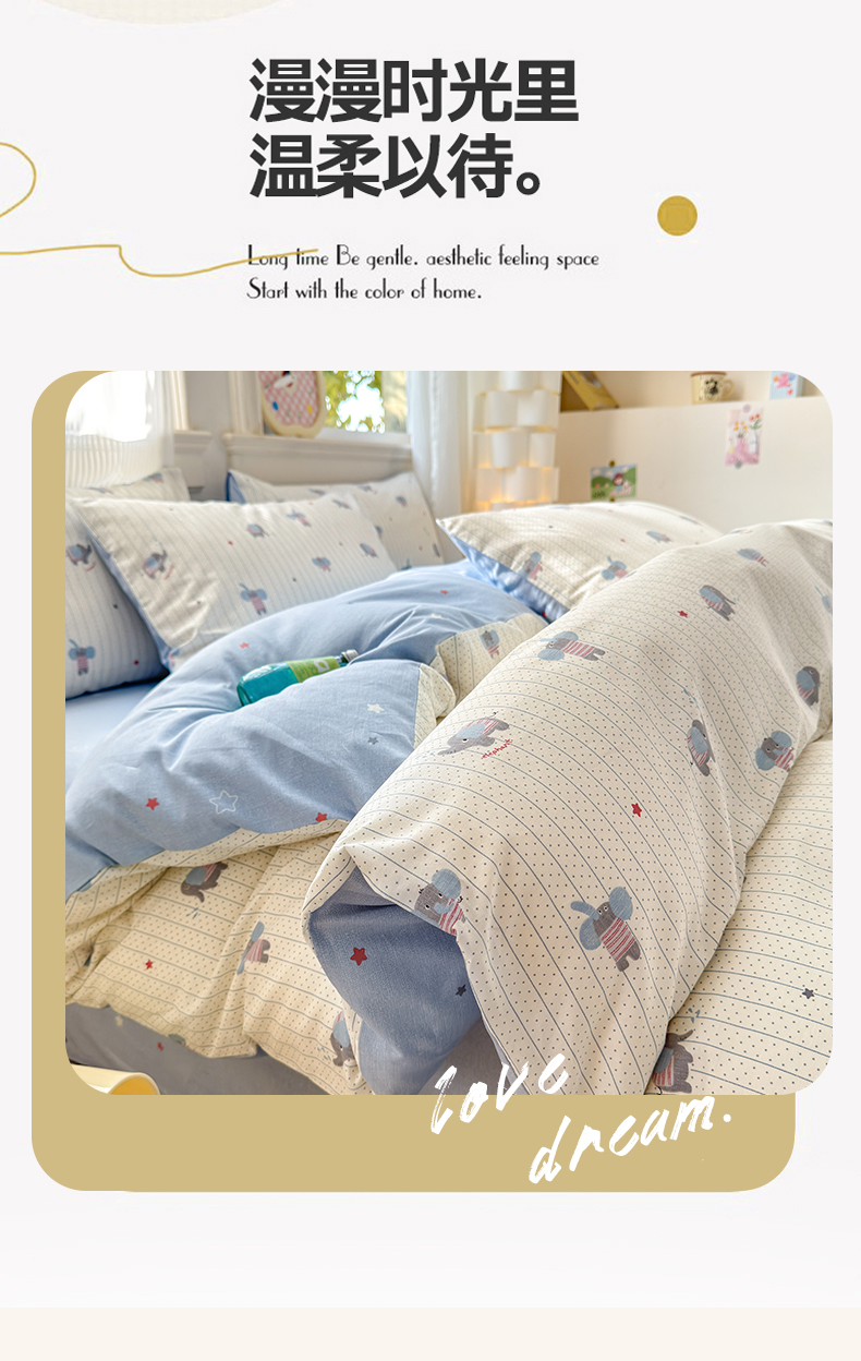 当前位置: 91家纺网 > 商品网购 > 床品套件 > 四件套 > 全棉普通四件套 > 清雅福 2025全棉13372小清新四件套和单品早春系列第一批-四件套 跳跳象