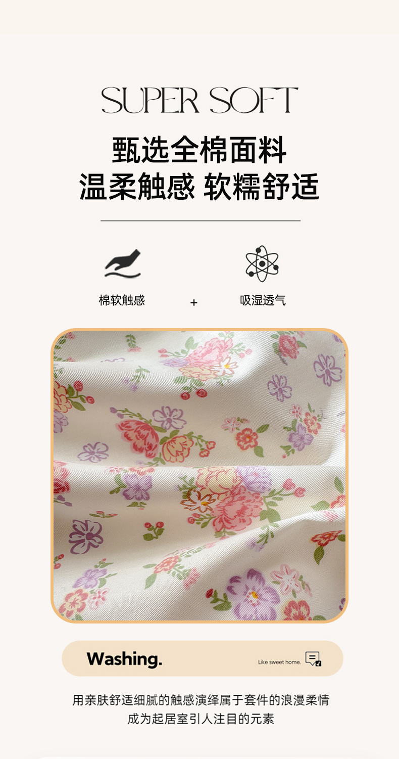 商品名称:清雅福 2025全棉13372小清新四件套和单品早春系列第一批 - 单被套 曼妙