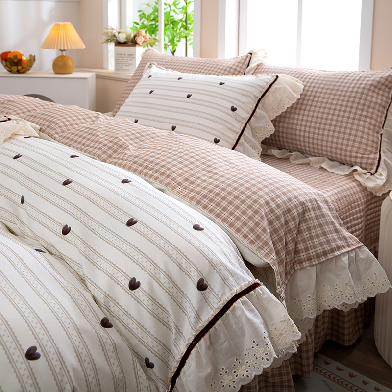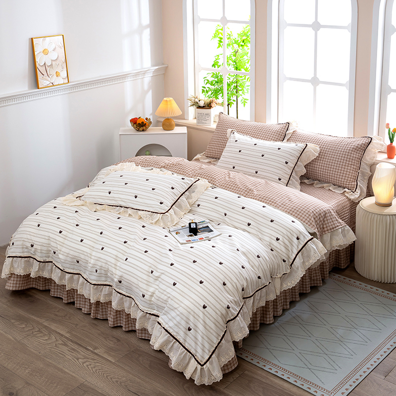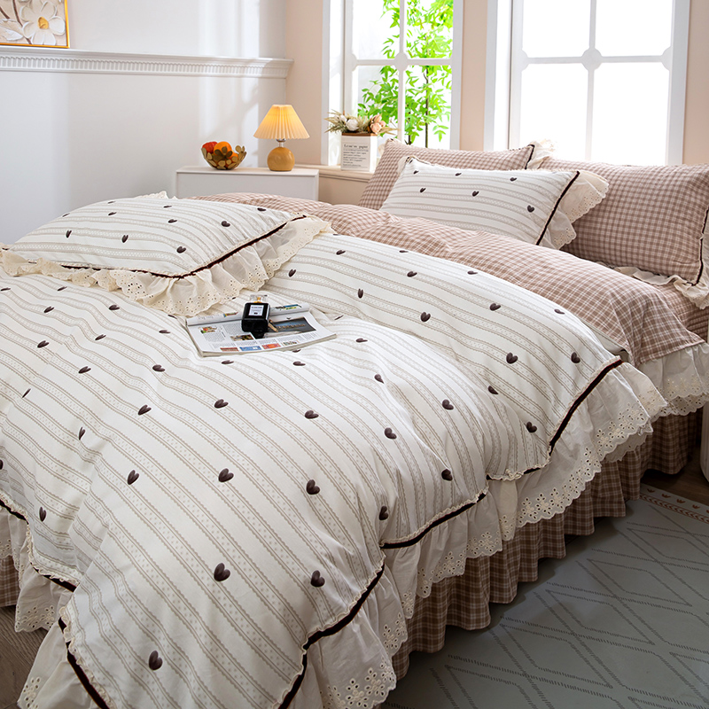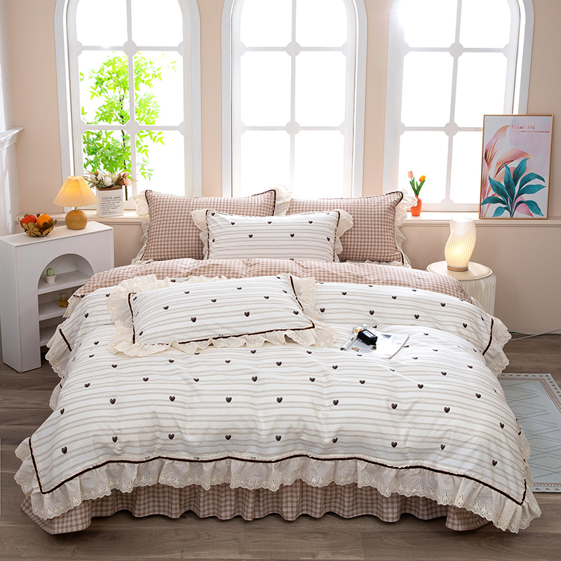 当前位置: 91家纺网 > 商品网购 > 床品套件 > 四件套 > 全棉普通四件套 > 木兰花 2025新款欧式全棉印花韩版花边夹棉床盖床裙款四件套【控价288元起】 浅爱