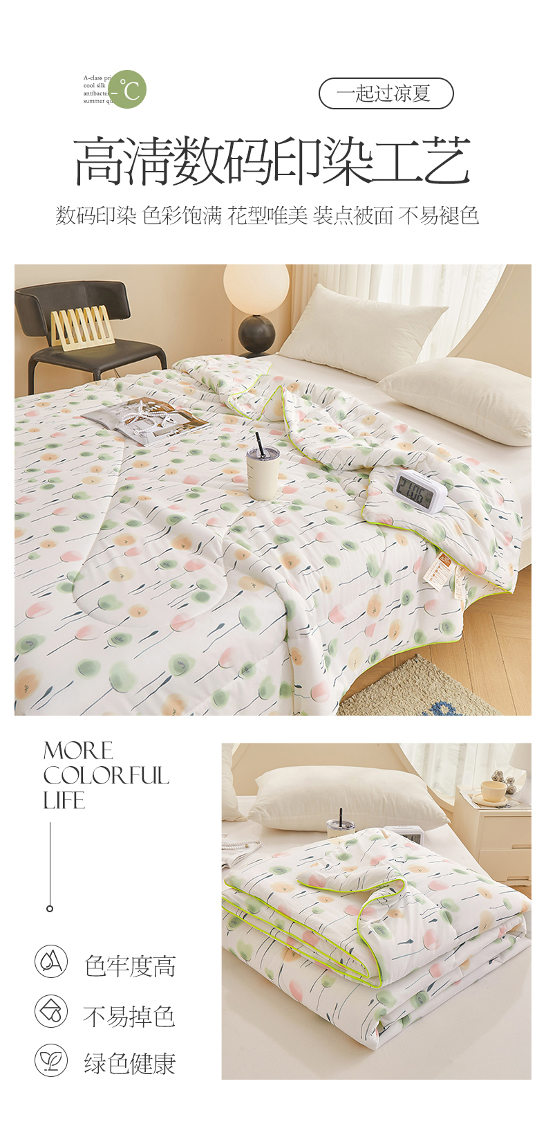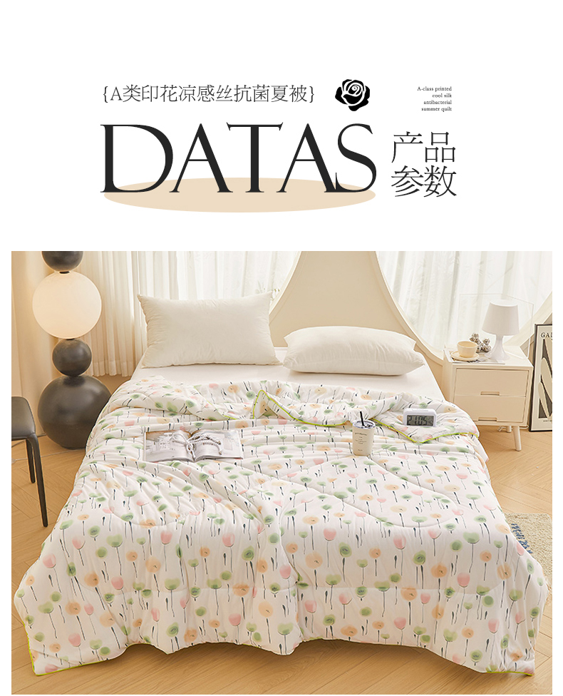 商品名称:董韵家纺 2025年新款凉感丝数码印花夏被 情香花