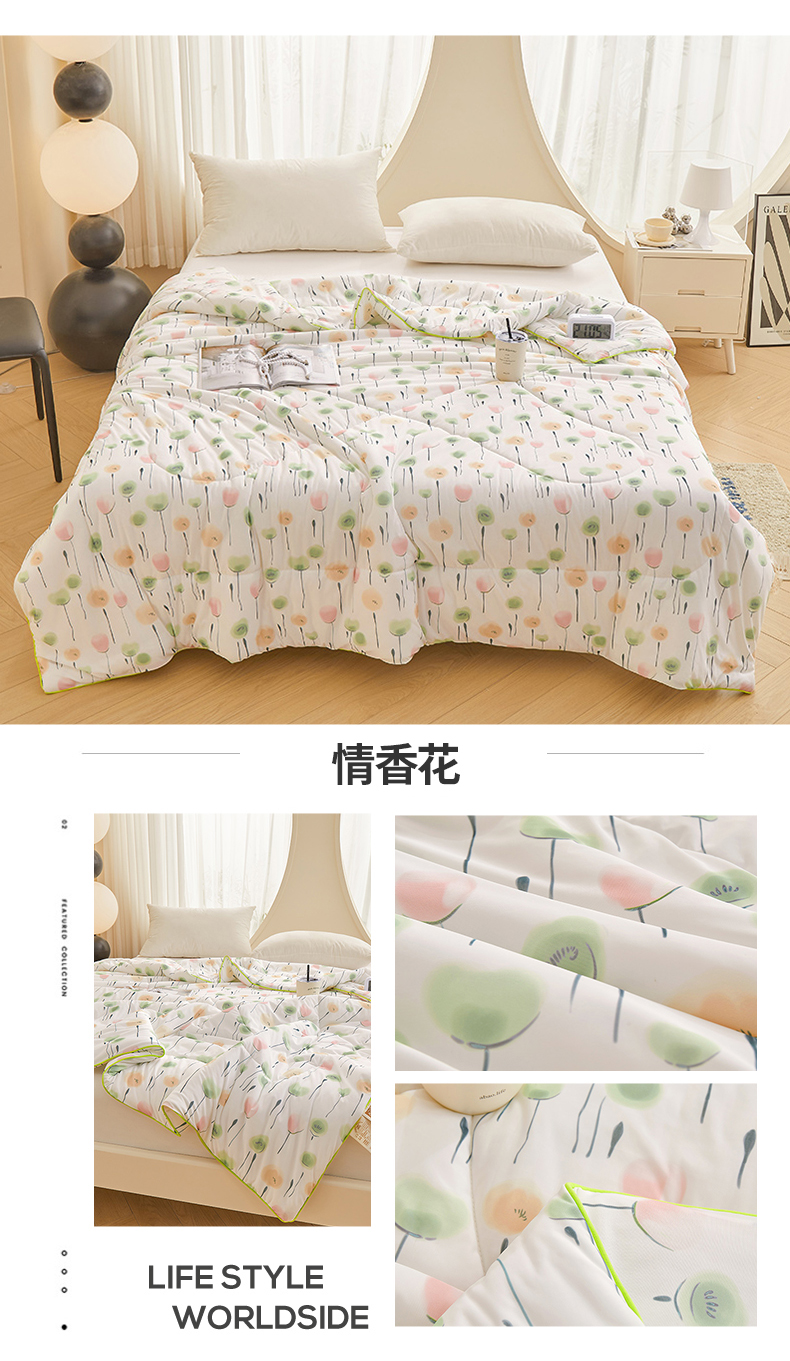董韵家纺 2025年新款凉感丝数码印花夏被 情香花