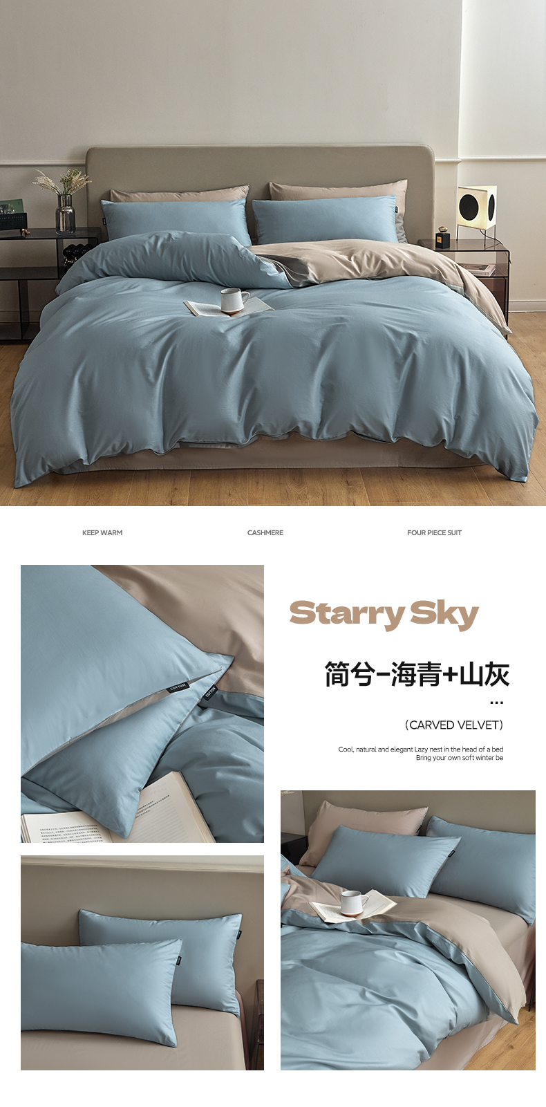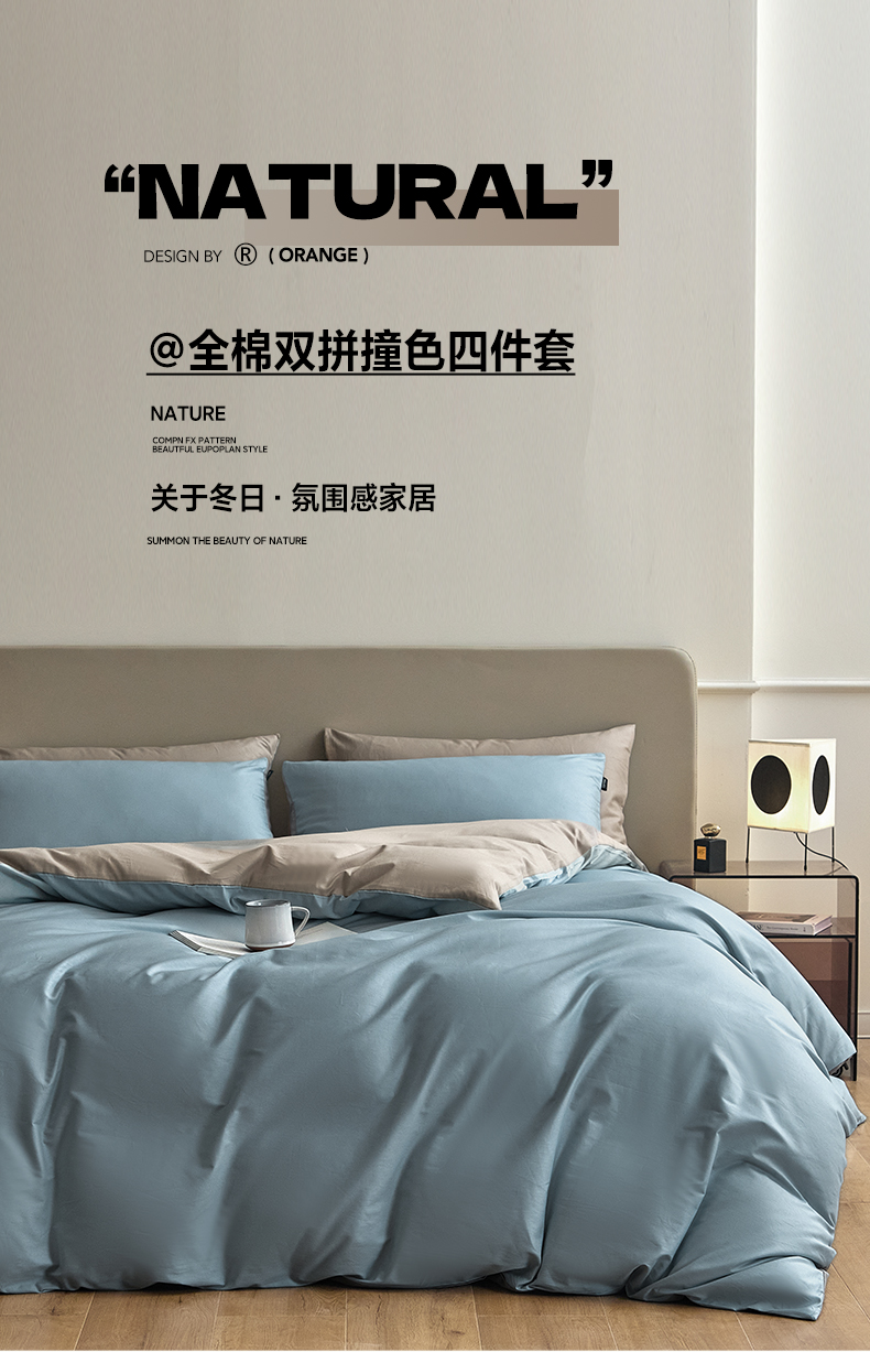 当前位置: 91家纺网 > 商品网购 > 床品套件 > 四件套 > 全棉普通四件套 > 佳汐蓝家纺 2025新款全棉纯色双拼-简兮系列四件套 简兮-海青+山灰