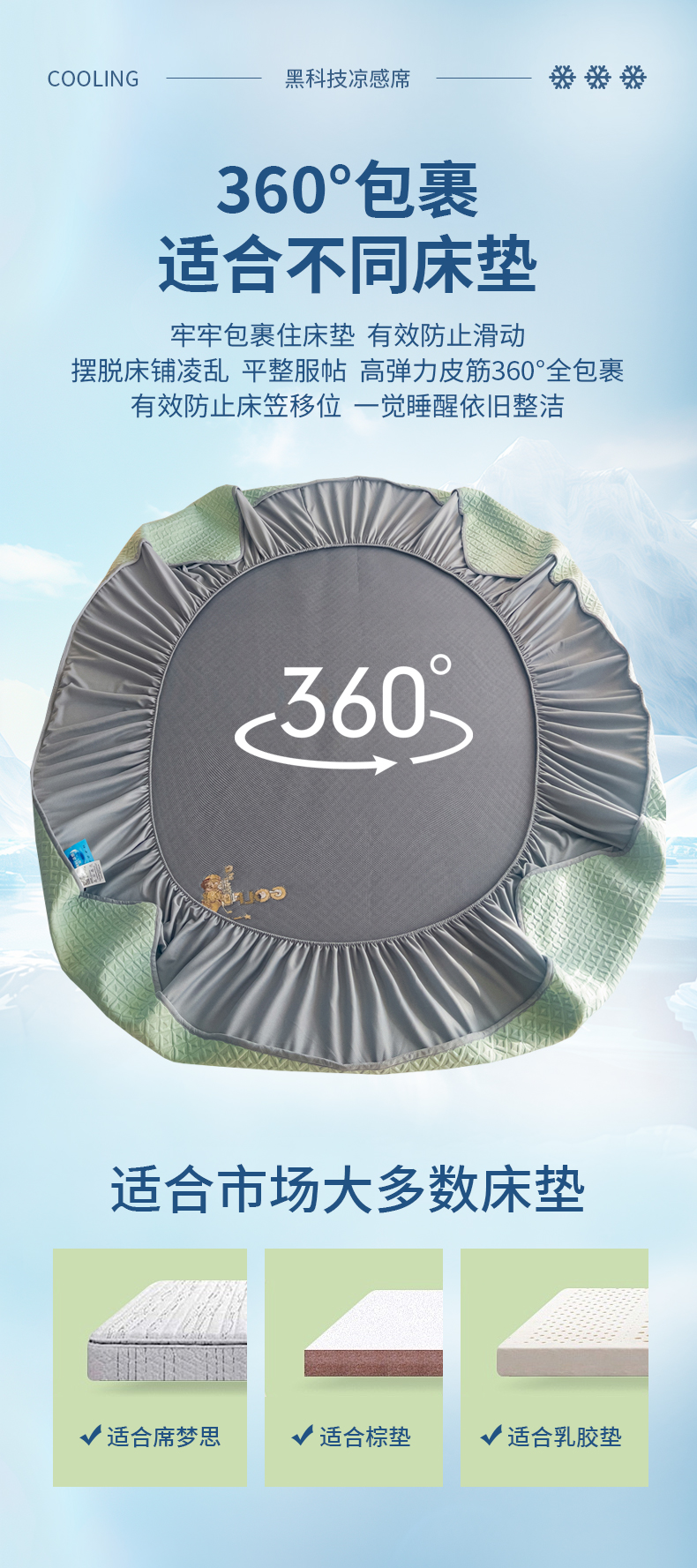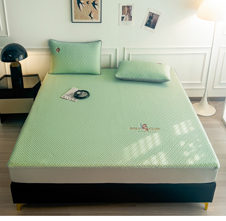 商品名称:阿牛席业2025新款凉感软席系列-C-凉感素色绣花床笠 POLO熊-绿