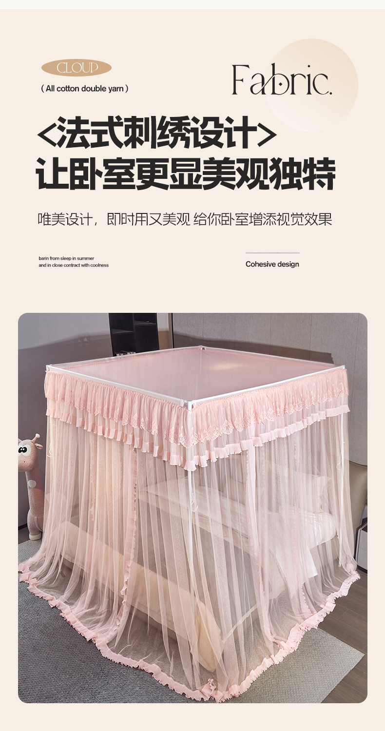 (总)夏彩 2025新款五面保暖亲肤面料坐床拉链四季款蚊帐-88632,星愿熊,拉贝贝,羽飞舞,支架,保暖顶-灰色,保暖顶-粉色,保暖顶-绿色