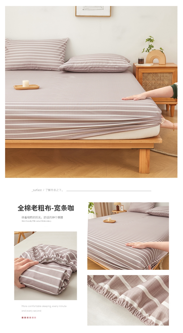商品名称:慕梵家居 2025新款全棉老粗布床笠系列 全棉老粗布-宽条咖