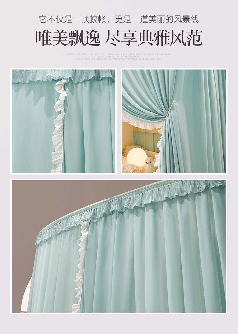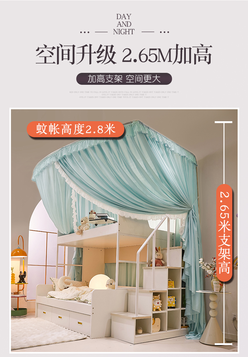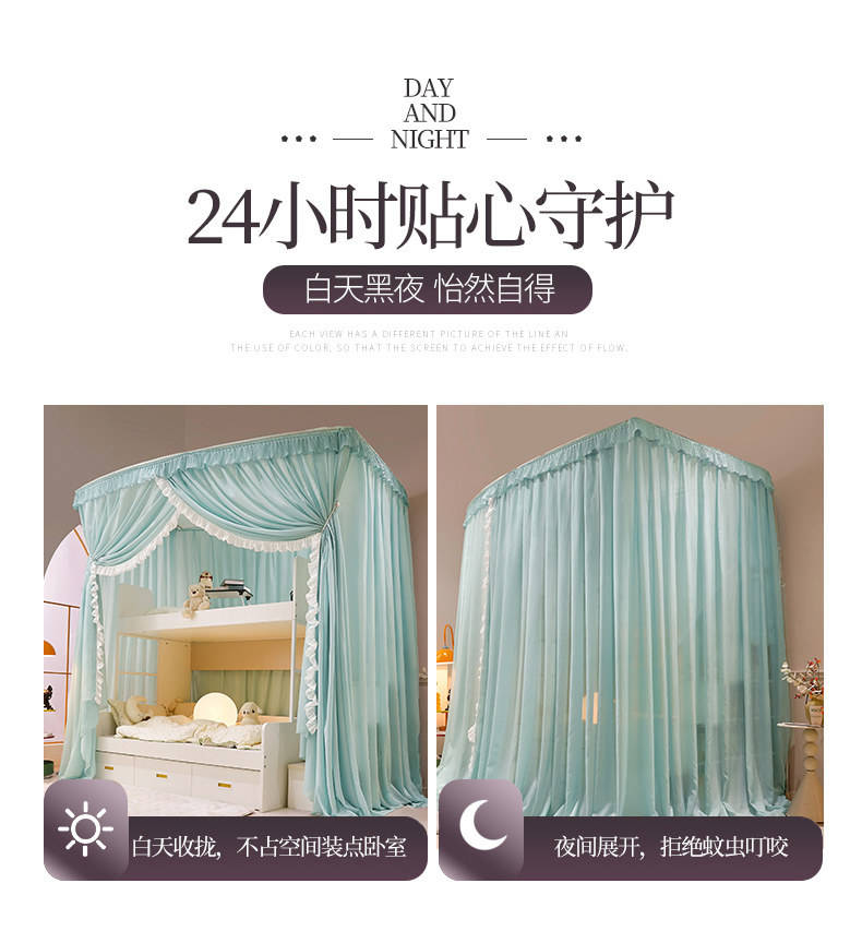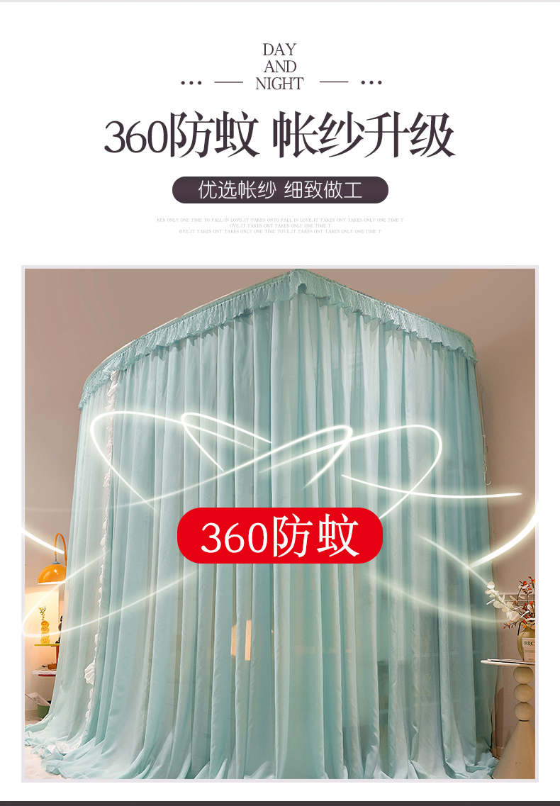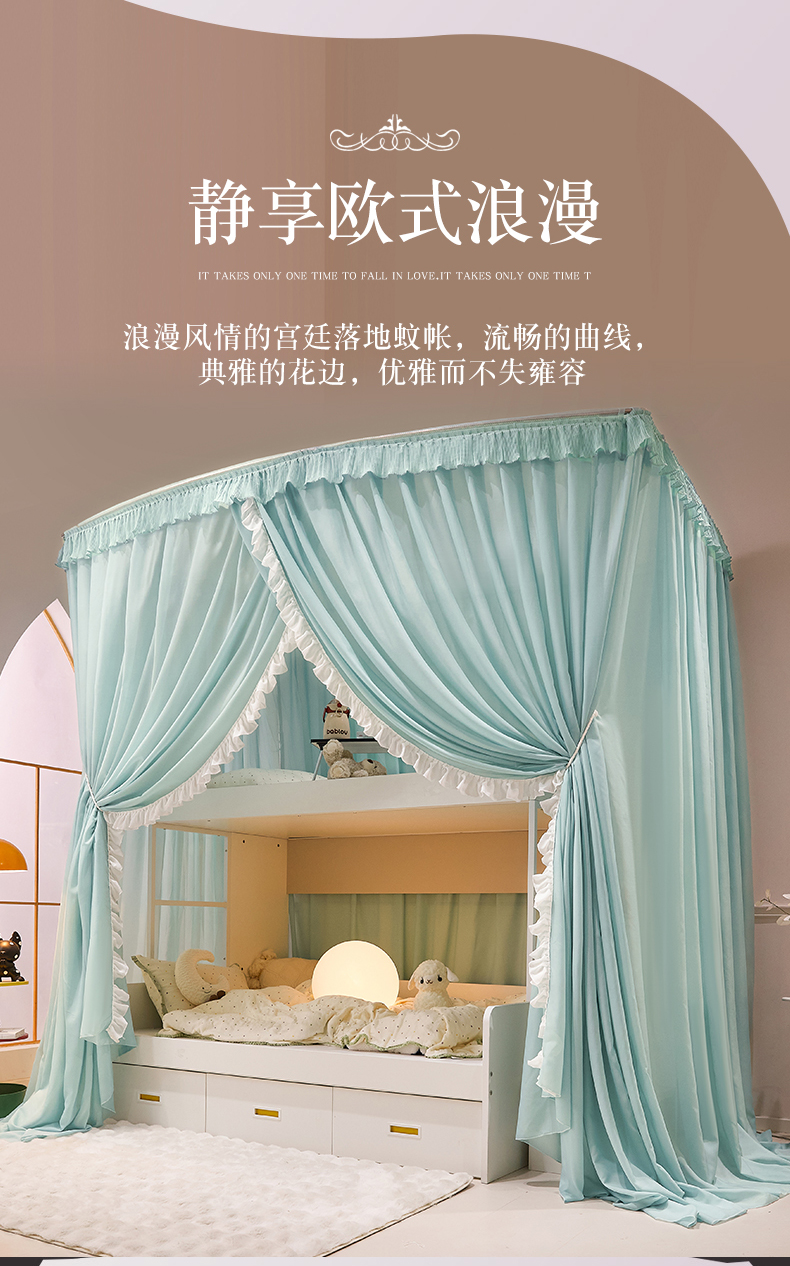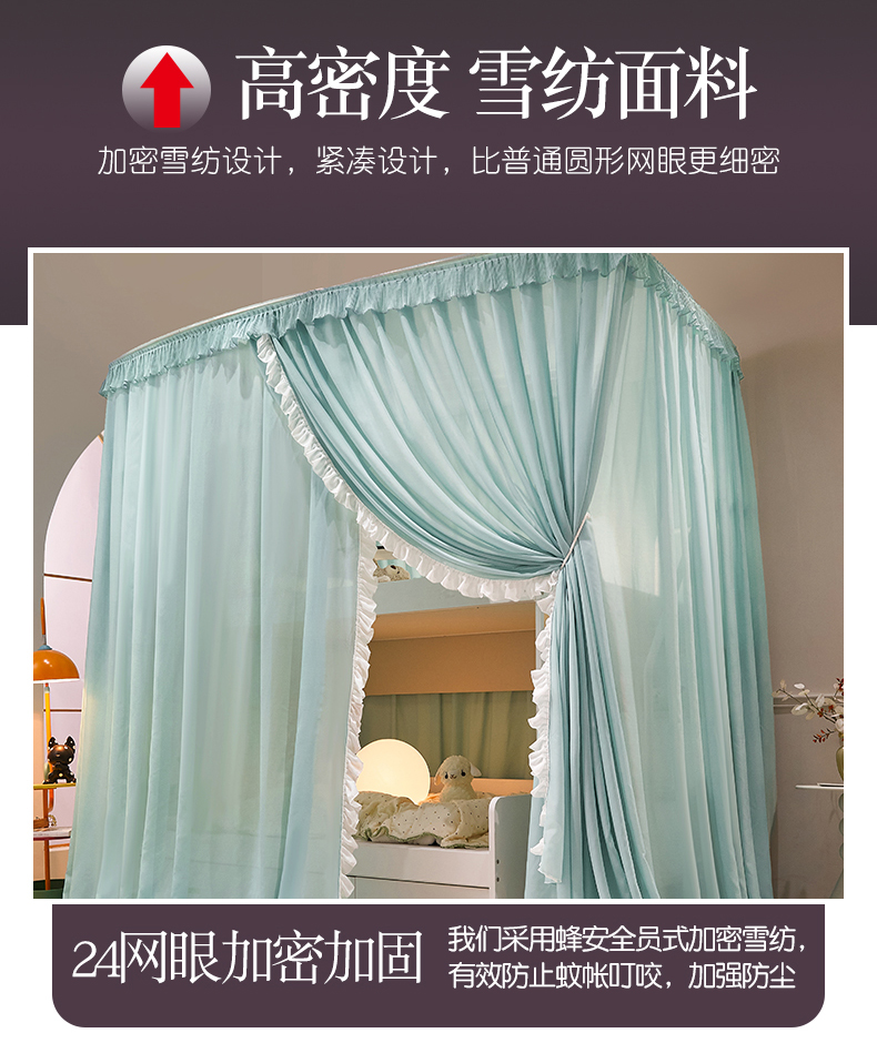 (总)夏彩 2025新款蕾丝U型防摔坐床蚊帐-88630,绿雅灰,藕玉色,香槟色