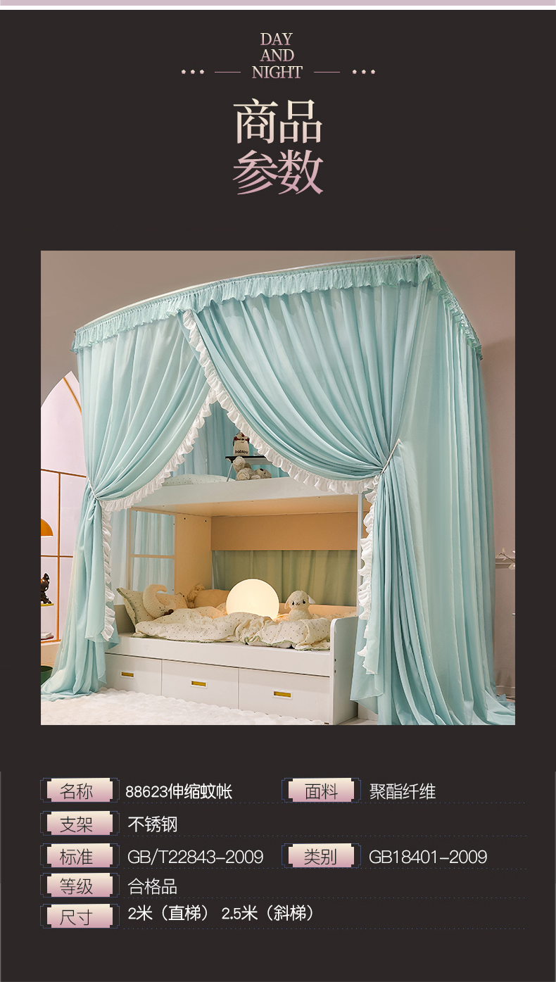 商品名称:夏彩 2025新款雪纺子母一体式伸缩蚊帐-88623 88623-浅水蓝