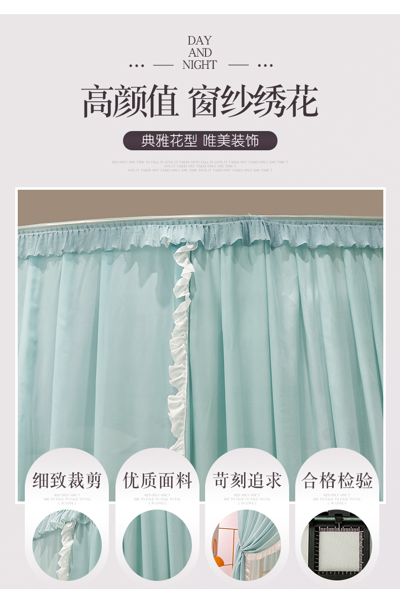 (总)夏彩 2025新款棉麻雪纺绣花防遮光铁艺烤漆学生蚊帐-88627,珍珠扣,88627-蓝灰,88627-蓝绿,88627-暖灰,88627-浅粉玉,88627-清新绿,88627-香槟,88628-茶杏色,88628-青术灰,88628-清新绿,88628-云水蓝