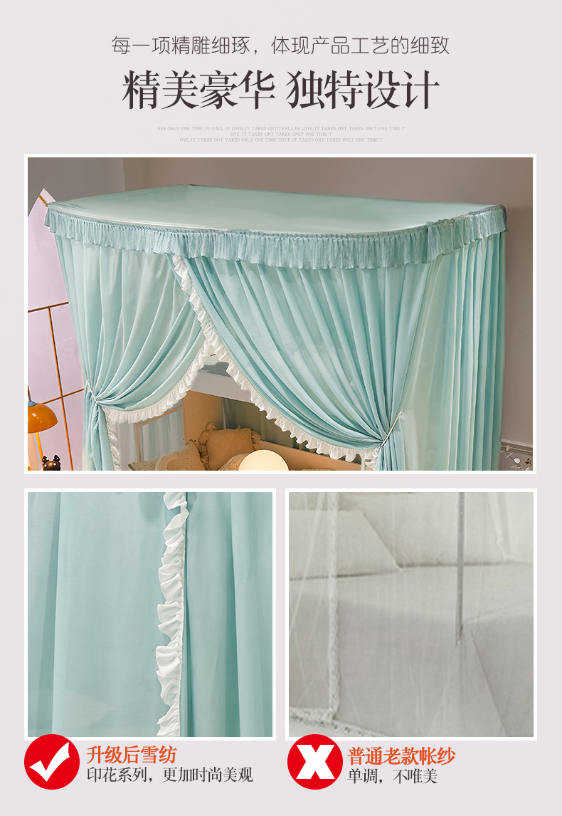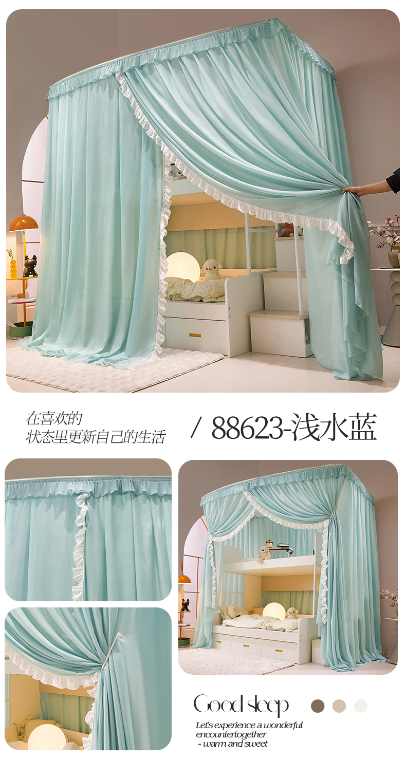 (总)夏彩 2025新款浪漫唯美T+U床笠式坐床外穿防摔蚊帐-88610,886610冰海蓝,886610极光白,886610浅粉玉,886610浅水蓝,886610蔷薇粉,886610杏仁黄,886610雅士灰