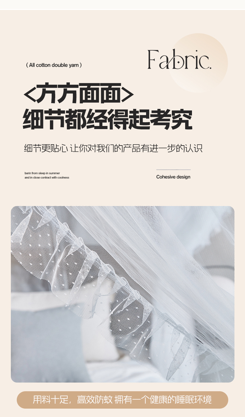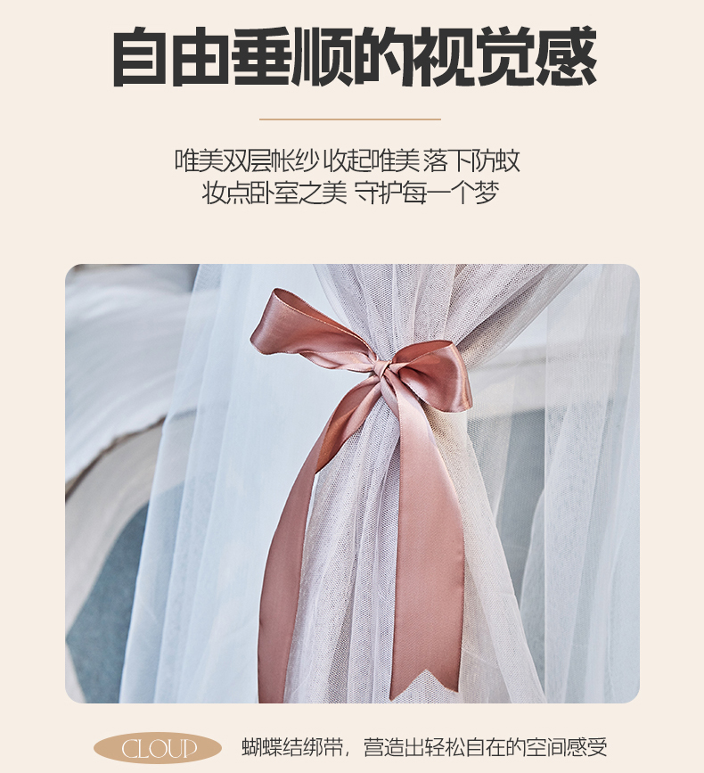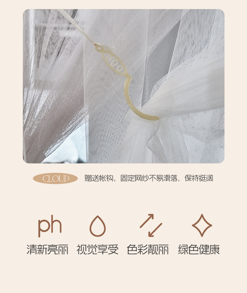 商品名称:夏彩 2025新款雪纺双层加柔加密外撑式25烤漆加粗宫廷蚊帐支架-88611 88611卡其