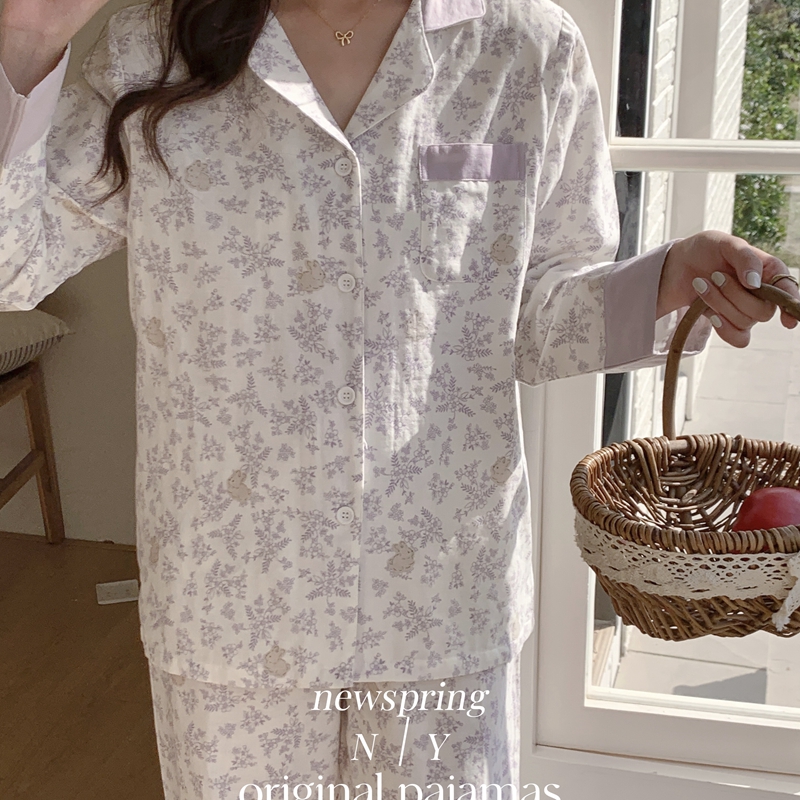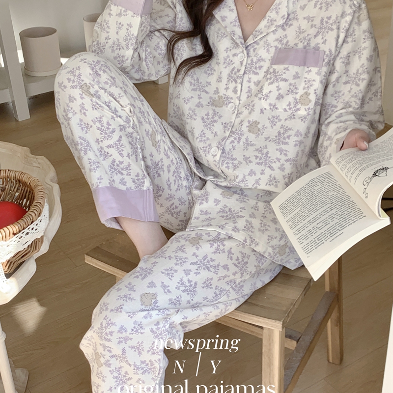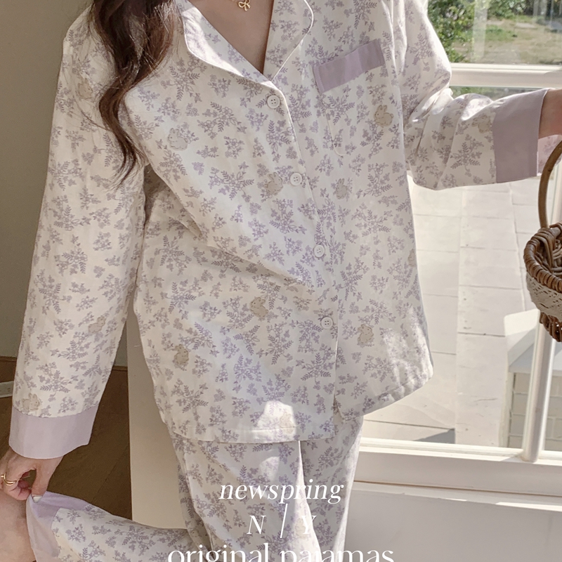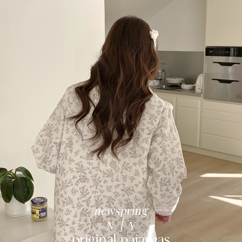 (总)纽约生活 2025新款绉布圆领开扣长袖长裤(会员-5),波比熊,黑碎花猫咪,蝴蝶结粉熊,花花狗,蓝碎花,塞纳花房