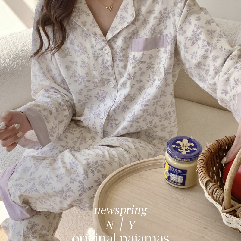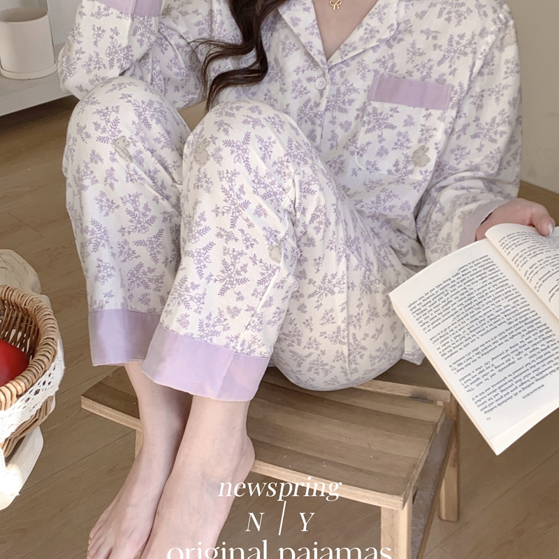 (总)纽约生活 2025新款有氧纱南法蕾丝西装领长袖长裤(会员-5),冰碎紫花,初禾,杉野蓝,兔影繁花,烟雨蝴蝶