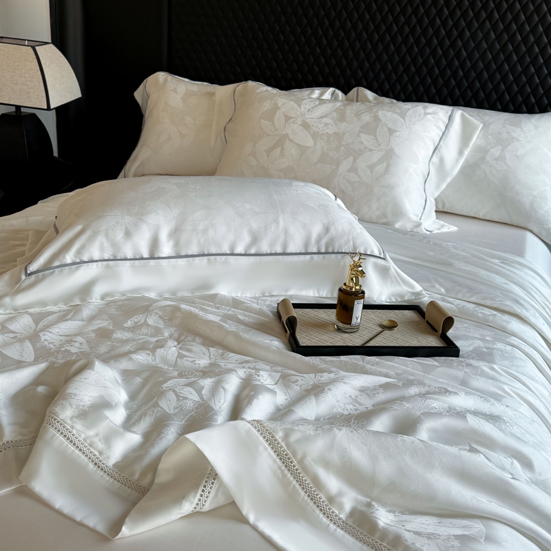 娇逸2025新款60s兰精天丝提花镂空夏被四件套 春菡-白