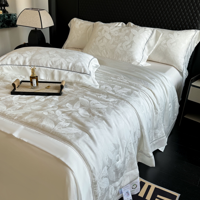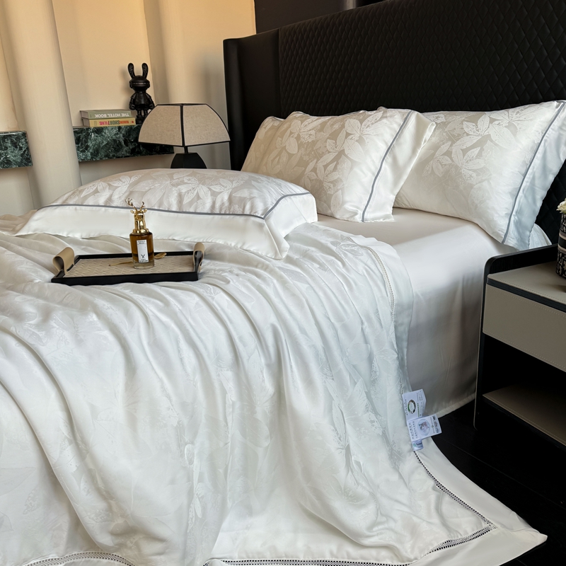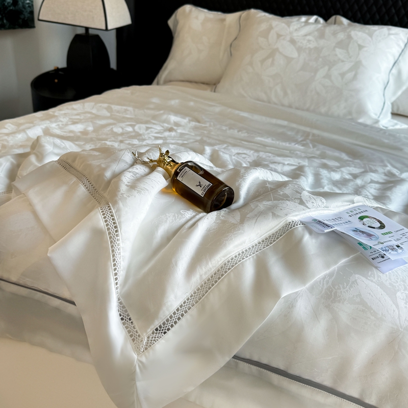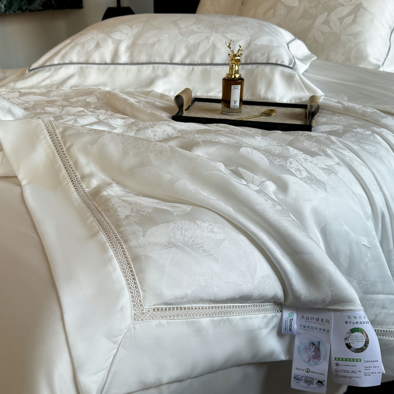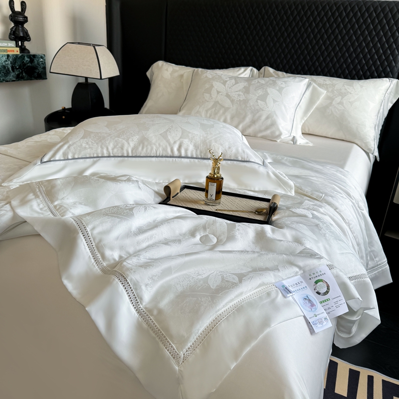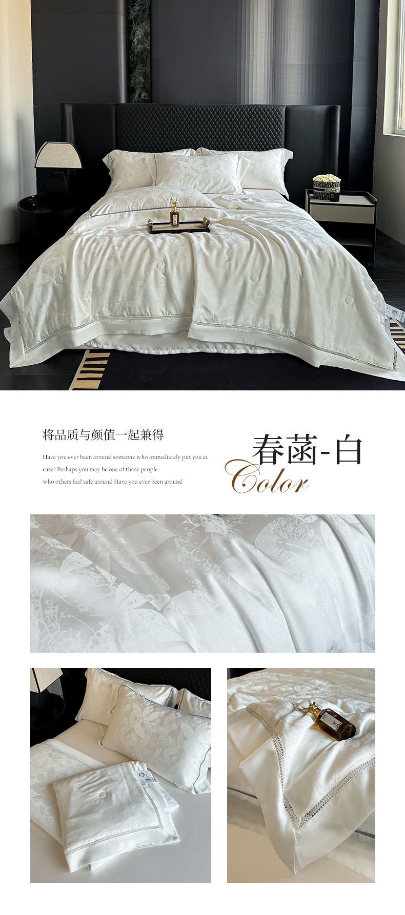 • 91家纺网 家纺一手货源 找家纺 娇逸2025新款60s兰精天丝提花镂空夏被四件套 春菡-白