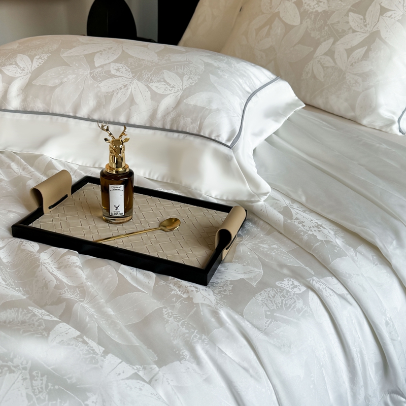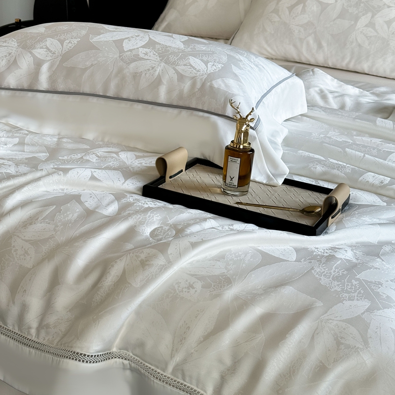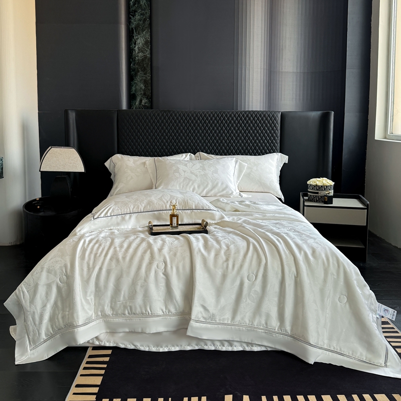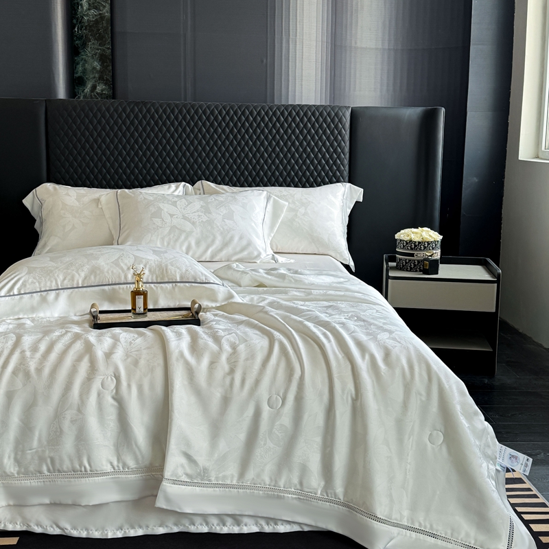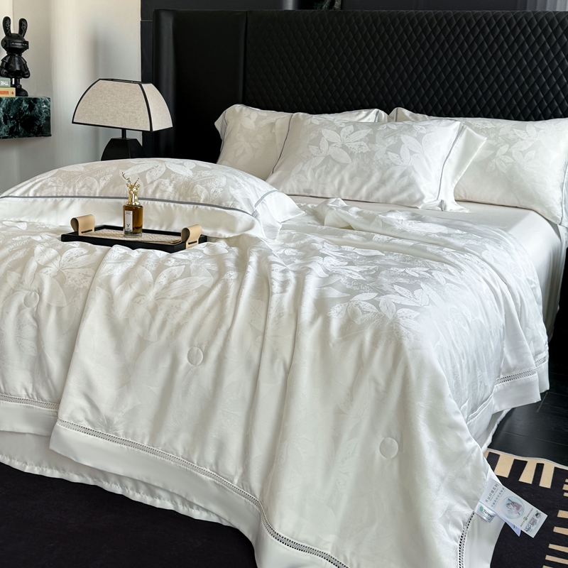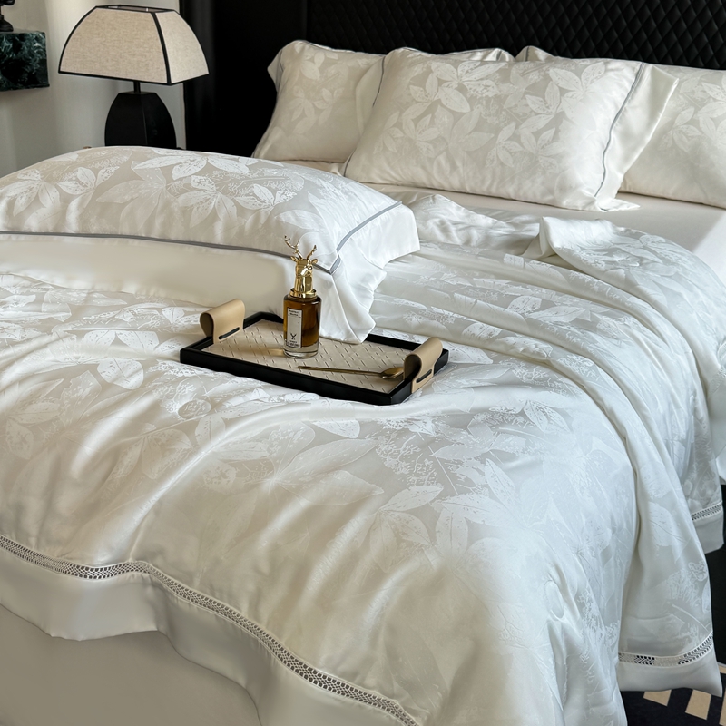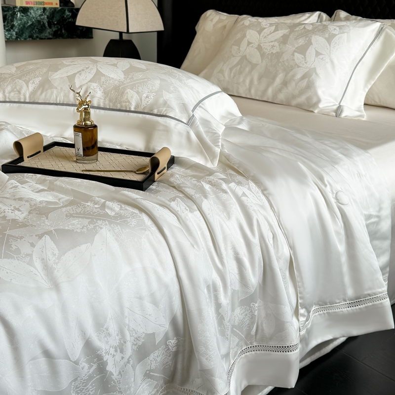 • 91家纺网 家纺一手货源 找家纺 娇逸2025新款60s兰精天丝提花镂空夏被四件套 春菡-白