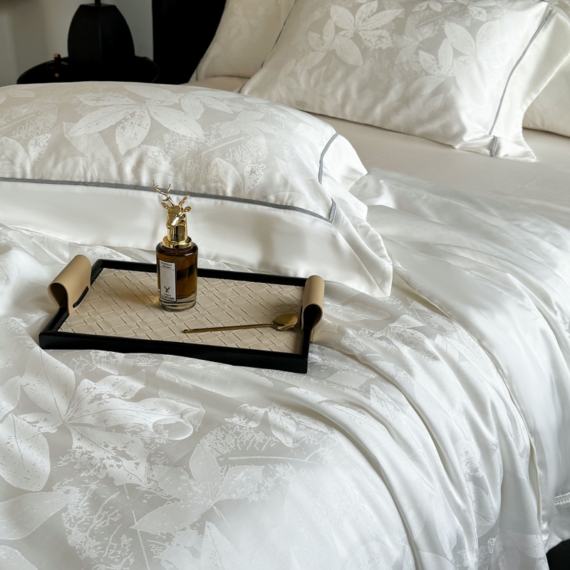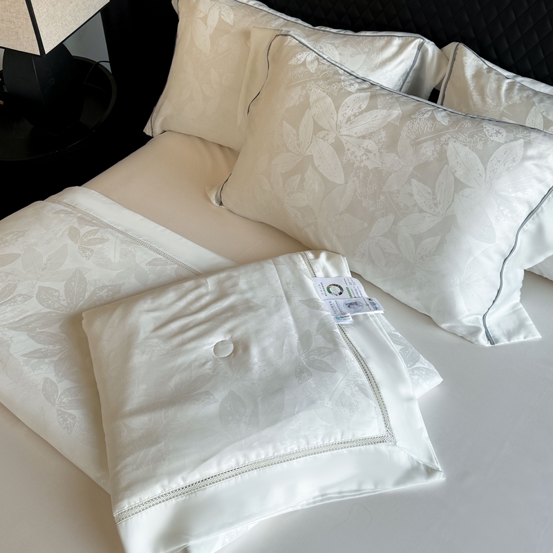 当前位置: 91家纺网 > 商品网购 > 被子 > 夏被 > 娇逸2025新款60s兰精天丝提花镂空夏被四件套 春菡-白