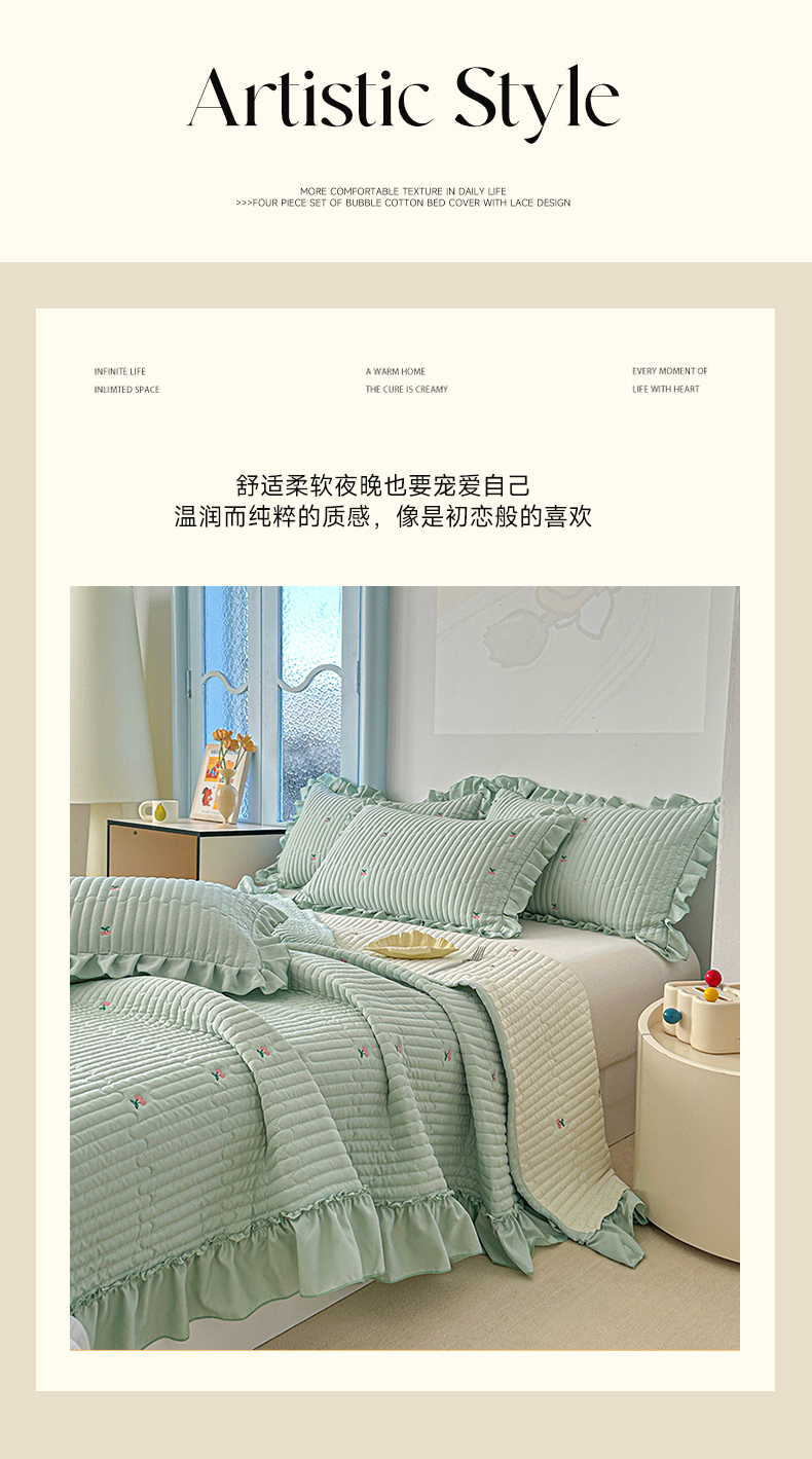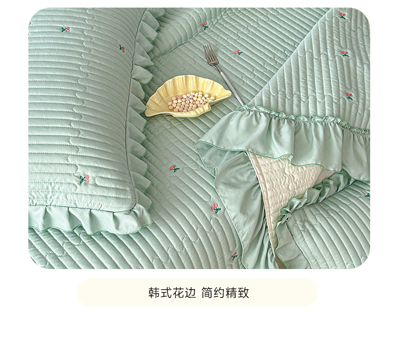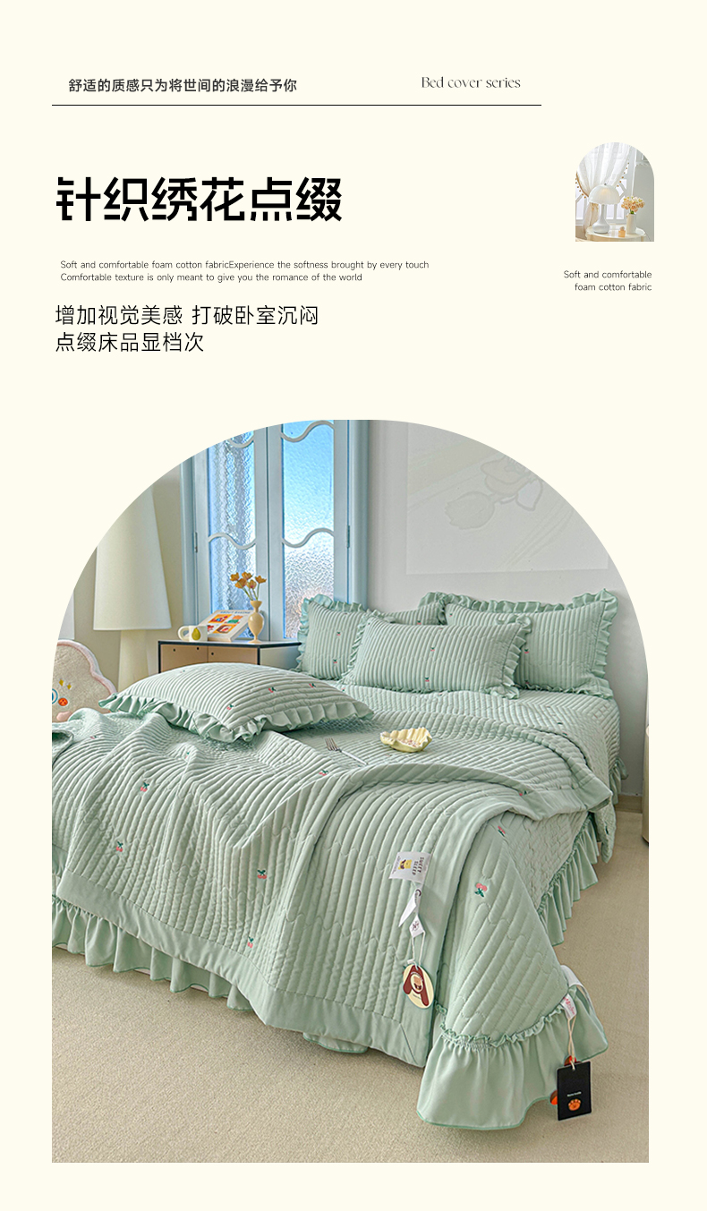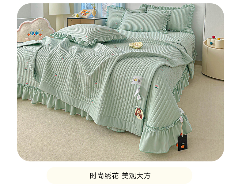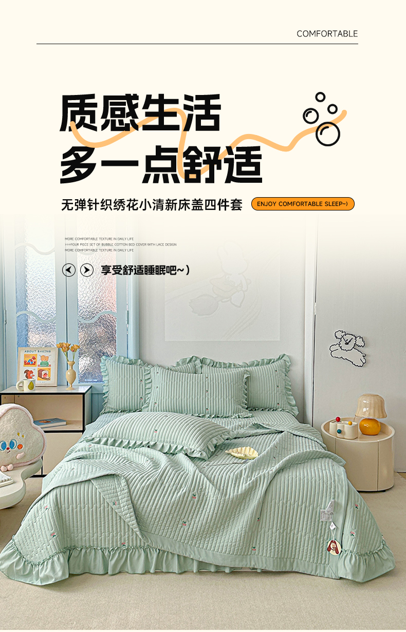 • 91家纺网 家纺一手货源 找家纺 源舜家纺 2025新款无弹针织绣花小清新床盖夏被四件套 绿色