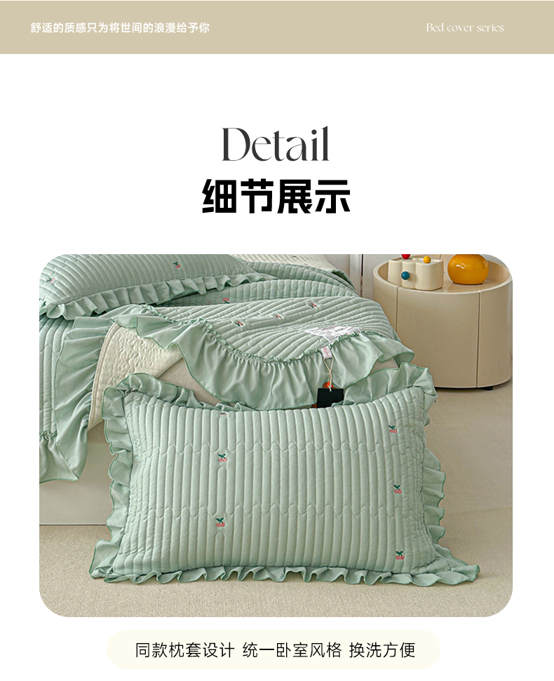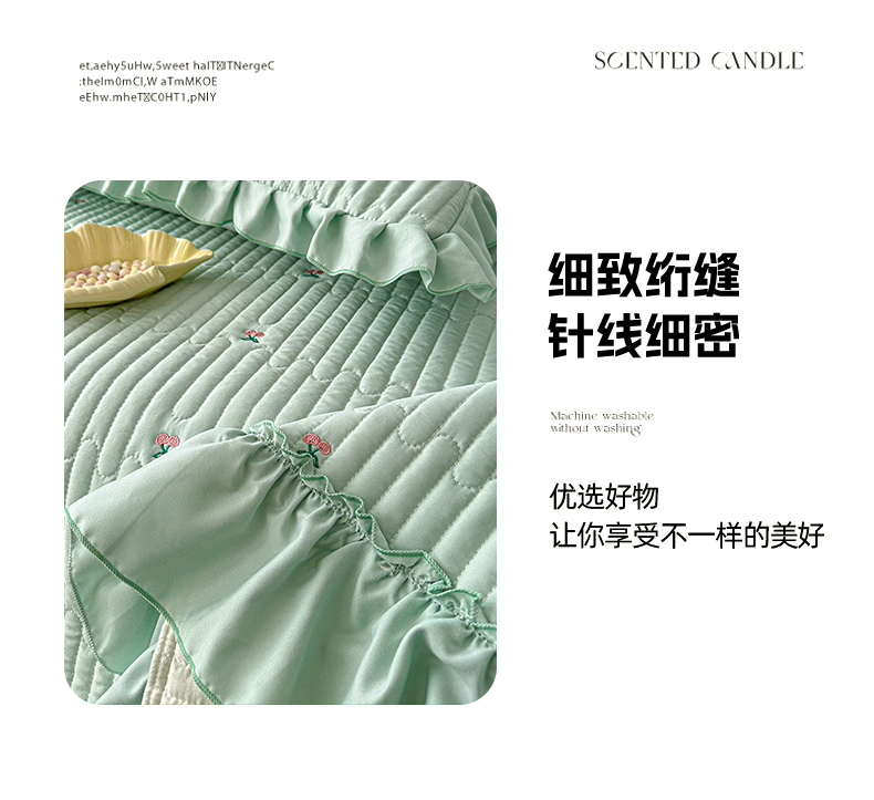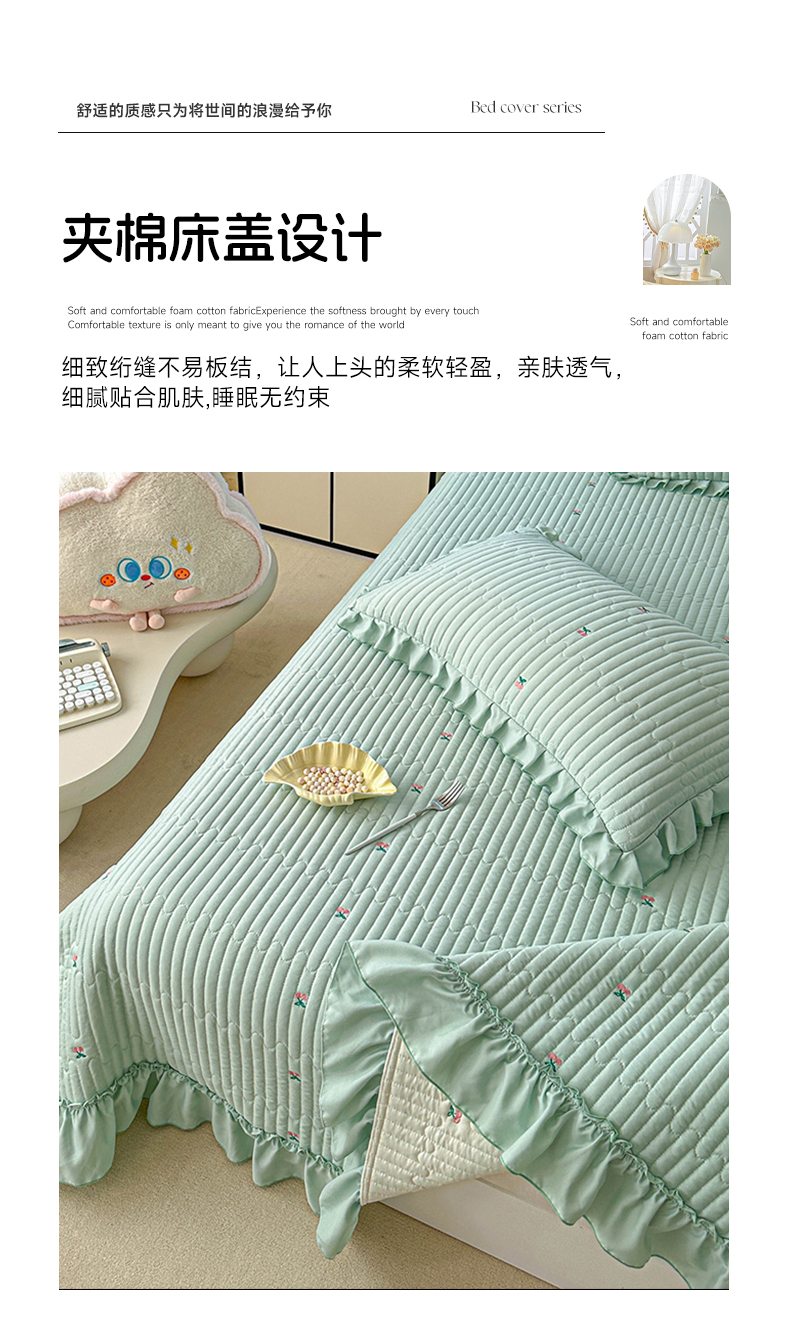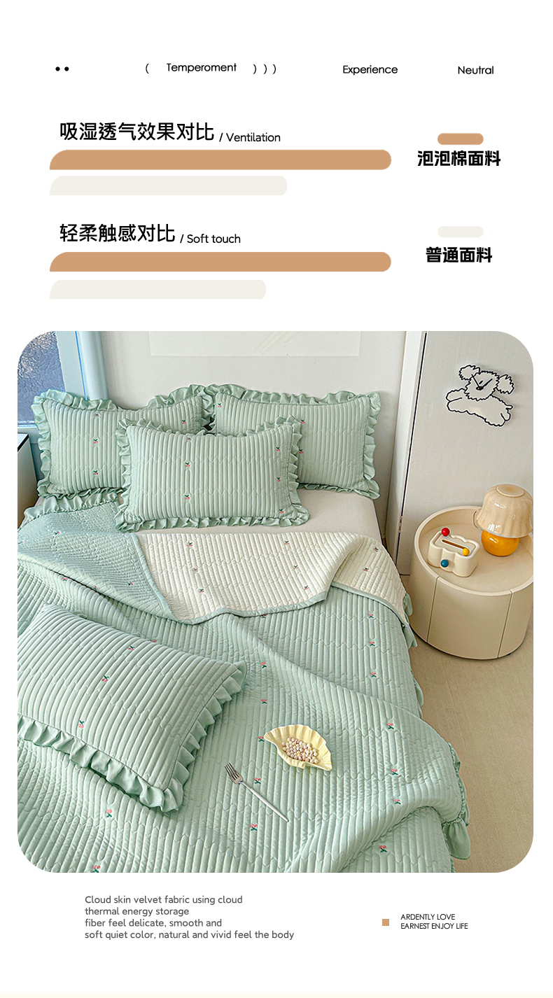• 91家纺网 家纺一手货源 找家纺 源舜家纺 2025新款无弹针织绣花小清新床盖夏被四件套 绿色