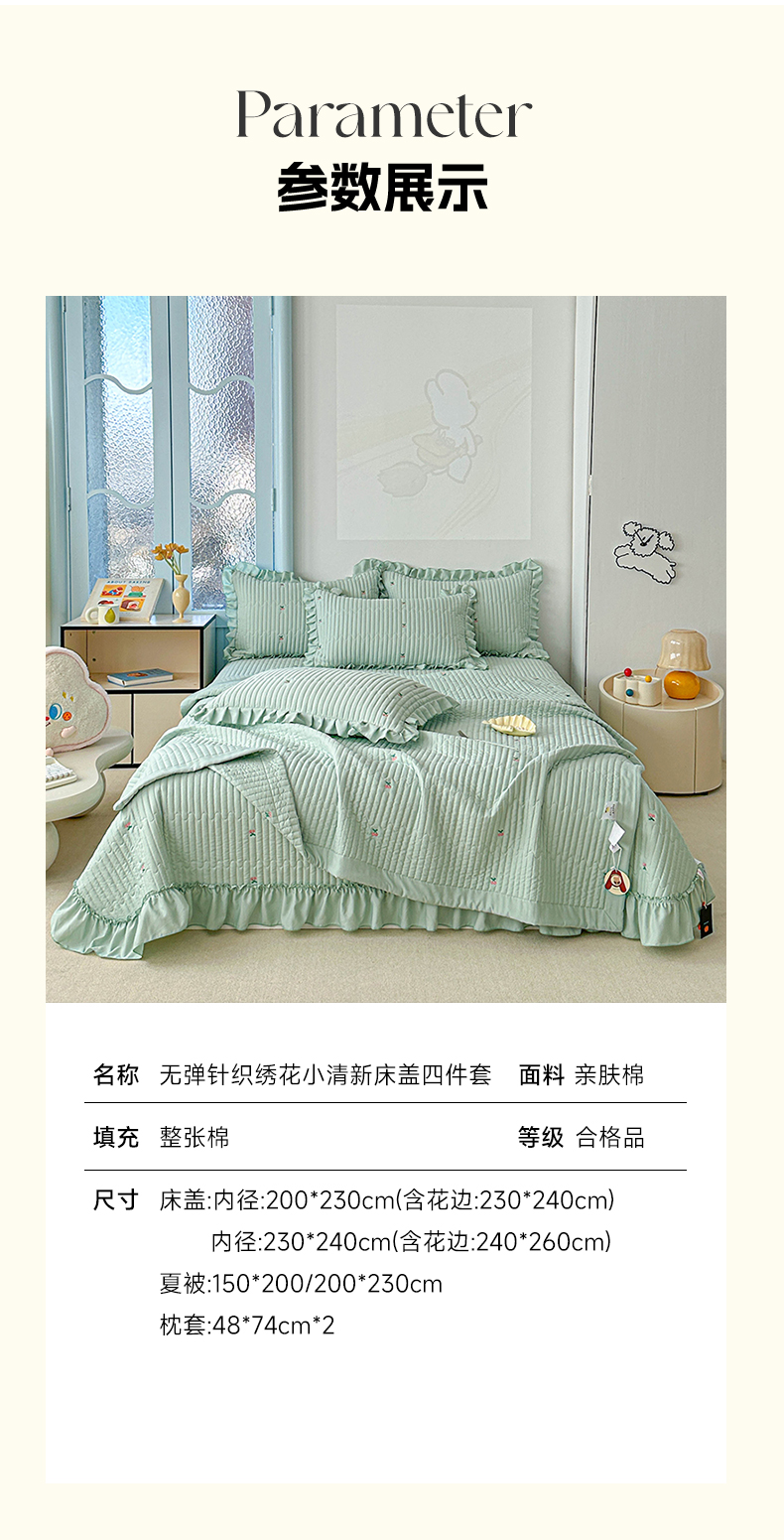 当前位置: 91家纺网 > 商品网购 > 床上用品 > 床盖 > 源舜家纺 2025新款无弹针织绣花小清新床盖夏被四件套 绿色